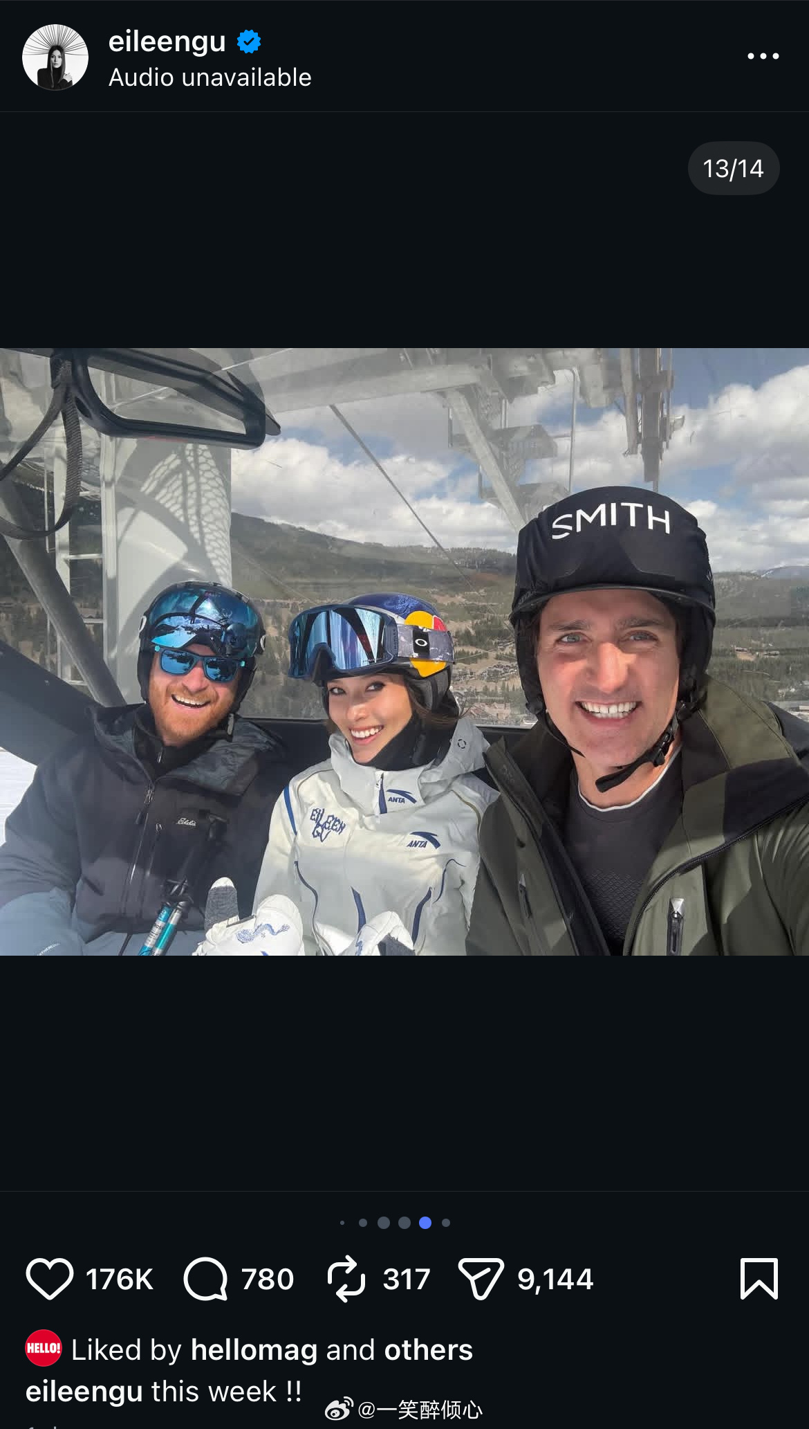 神奇的组合:谷爱凌、Justin Trudeau和哈里这还是谷爱凌本人自己发出来的合影。