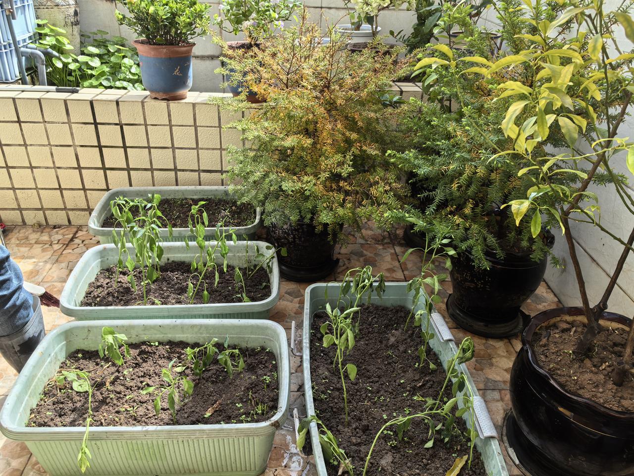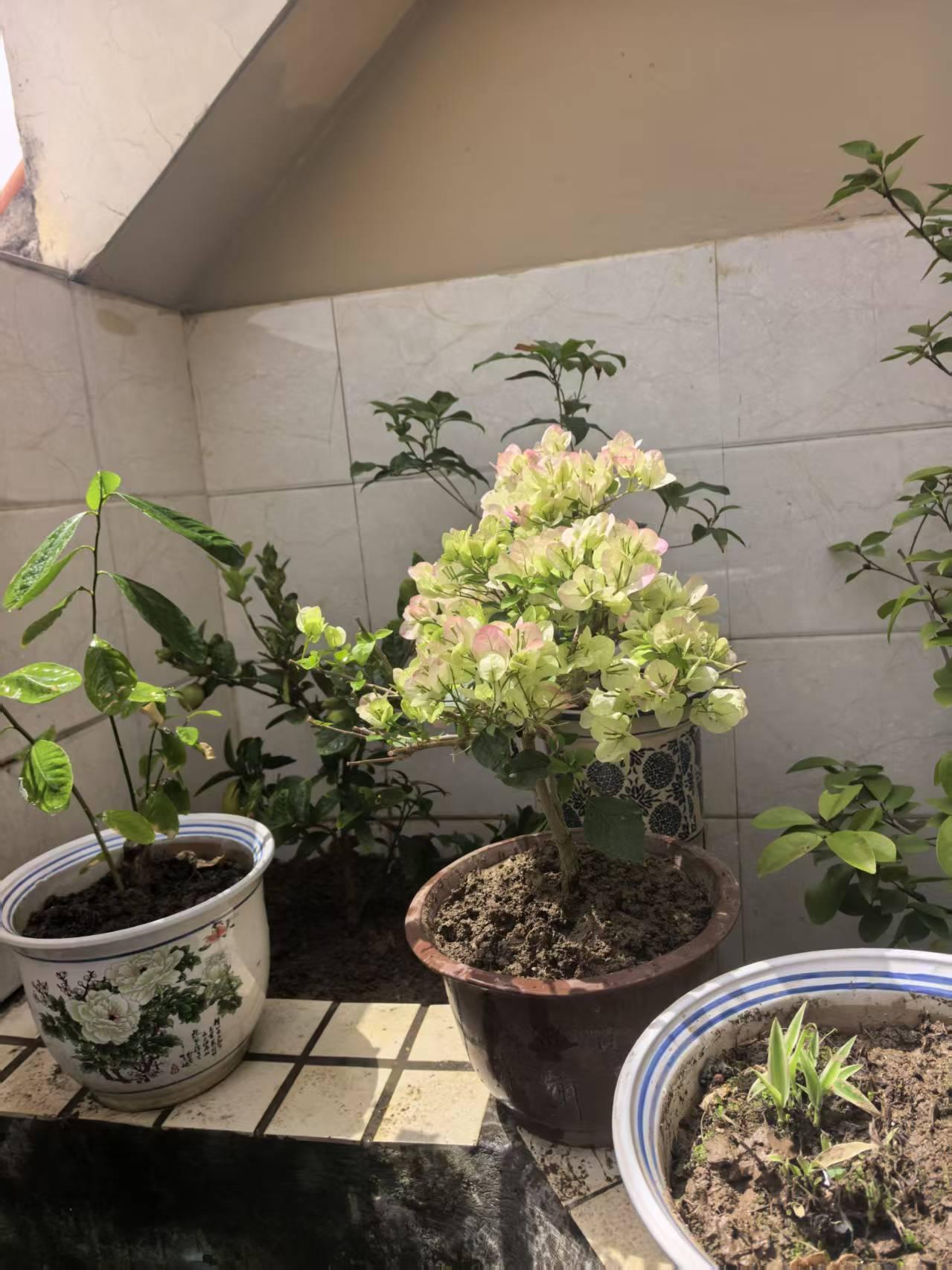 春天,适合播种。 于是和伙计商量,谁都不许偷懒一起收拾整理露台的小花园。 买了螺丝椒、本地辣椒和杭椒秧苗,买了发芽生姜种,又买了柠檬树、双色茉莉、三角梅、栀子花,顺带买了营养土,老板又送了两大袋子沙土,搬了两趟才搬到了露台上。 除草、施肥、翻土……一通忙碌,很可惜啊,以前买的米兰、榕树、茶花、杜鹃花都没有挨过这个冬天,成了残花败柳,只能连根拔起。 最心疼的是最坚强的两棵金钱松也没有像去年的这个春天,叶子新绿长得那么油亮油亮的,很可惜,叶子黄了许多,但愿这次松土施肥后能缓过来,天菩萨,这可是伙计说的我俩的棺材板啊,千万要活的长久。 花园里长势最好的是铜钱草和棕榈树,这是老家舅舅送的,在我家入土安家快十年了。每年春天,棕榈树被修剪的只剩三四片叶子,它就那么不挑水、肥,不挑气候的恣意生长着,一直努力展示自己的生命力。看看我家的铜钱草,一片叶子快有我的手掌大,刚拿回来时就小小的几根盘根错节的藤,现在得用一个大塑料箱装着它,鱼池水经过它过滤,鱼儿偶尔的跳起来啄它的叶子吃,它应该是这鱼池里最打眼的风景。 今年听劝,按照卖生姜的大姐教的方法种了半斤生姜,但愿今年能收获多一点姜,至少比去年多一点。实话说,种生姜真的不亏本,生姜还能很好的驱虫呢。 在实体店买了柠檬树种下了,还在网上买了两棵蓝莓树和一棵香水柠檬树,真心话,在网上买的,花的钱和实体店一样多,真心觉得应该在花农的实体店买,可以挑选。 今天表扬一下伙计,没有偷懒,除草,搬运,最后冲刷花园地板,给鱼池子换水都是他干的,就他的话术,一年不干活,干活管一年,天生懒骨,今天能尽心投入中途没有偷奸耍滑,也算他做家务了吧。 我的花花草草们,都健康成长吧,但愿能让我养眼养身还养心。友友们,你们的花盆里,都种下了什么绿色植物呢?