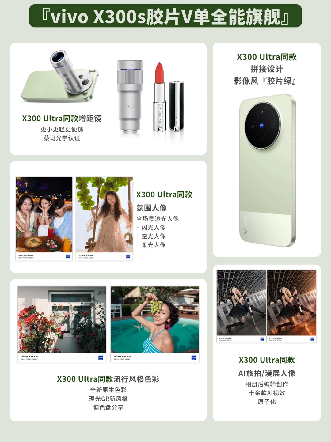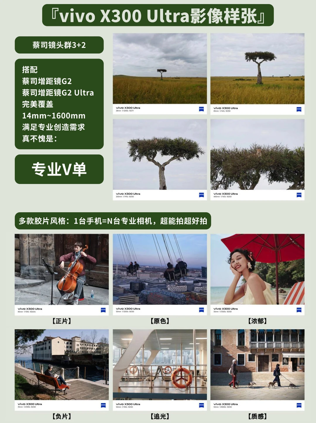 蔡司APO长焦+适配X300 Ultra同款蔡司增距镜G2,演唱会场景也能轻松拿捏;还有X300 Ultra同款个性调色盘、多款胶片风格