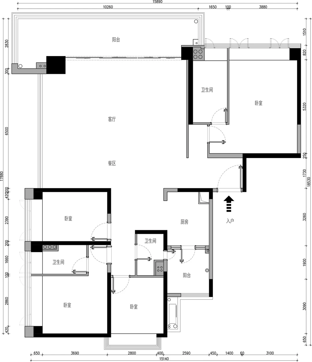 「iGo户型优化343期」 甲方设计需求: ✅ 保留 4 个房间(主人房+孩子房+孩子房+长辈房) ✅ 配套中西厨 ✅ 公区大气,有大平层质感