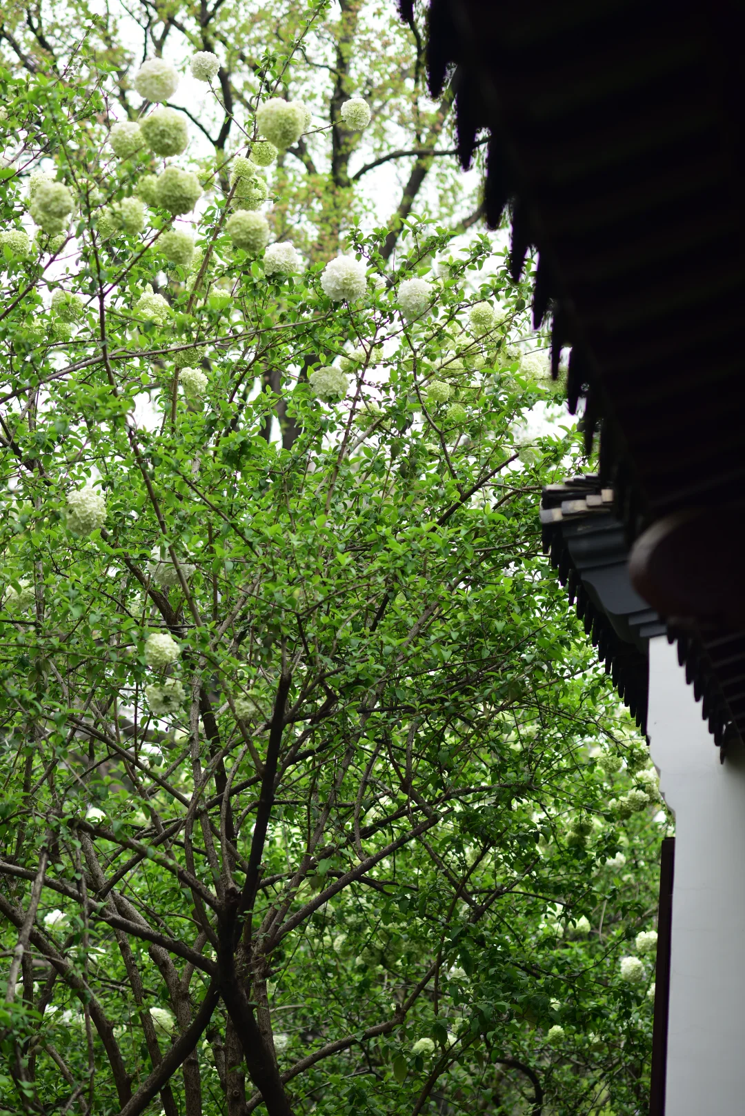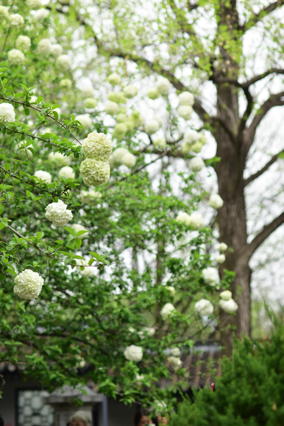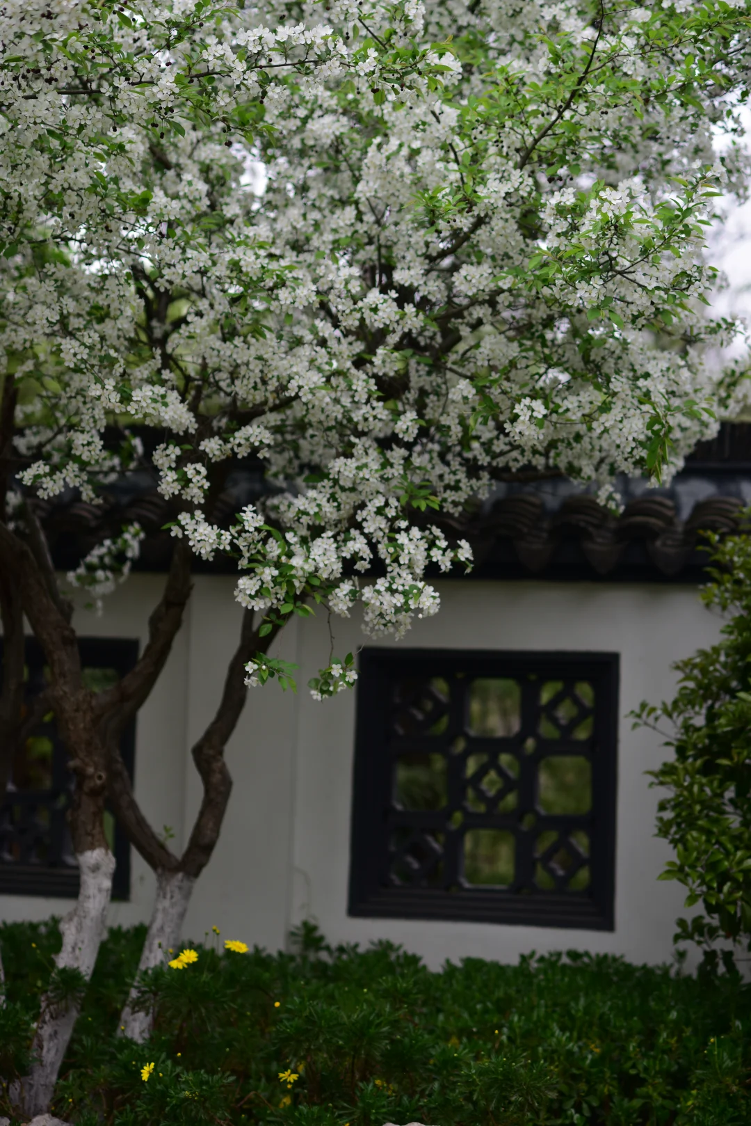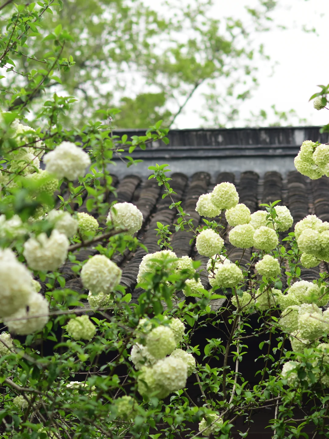 书院后院主树,红墙+白花+飞檐,古风感拉满