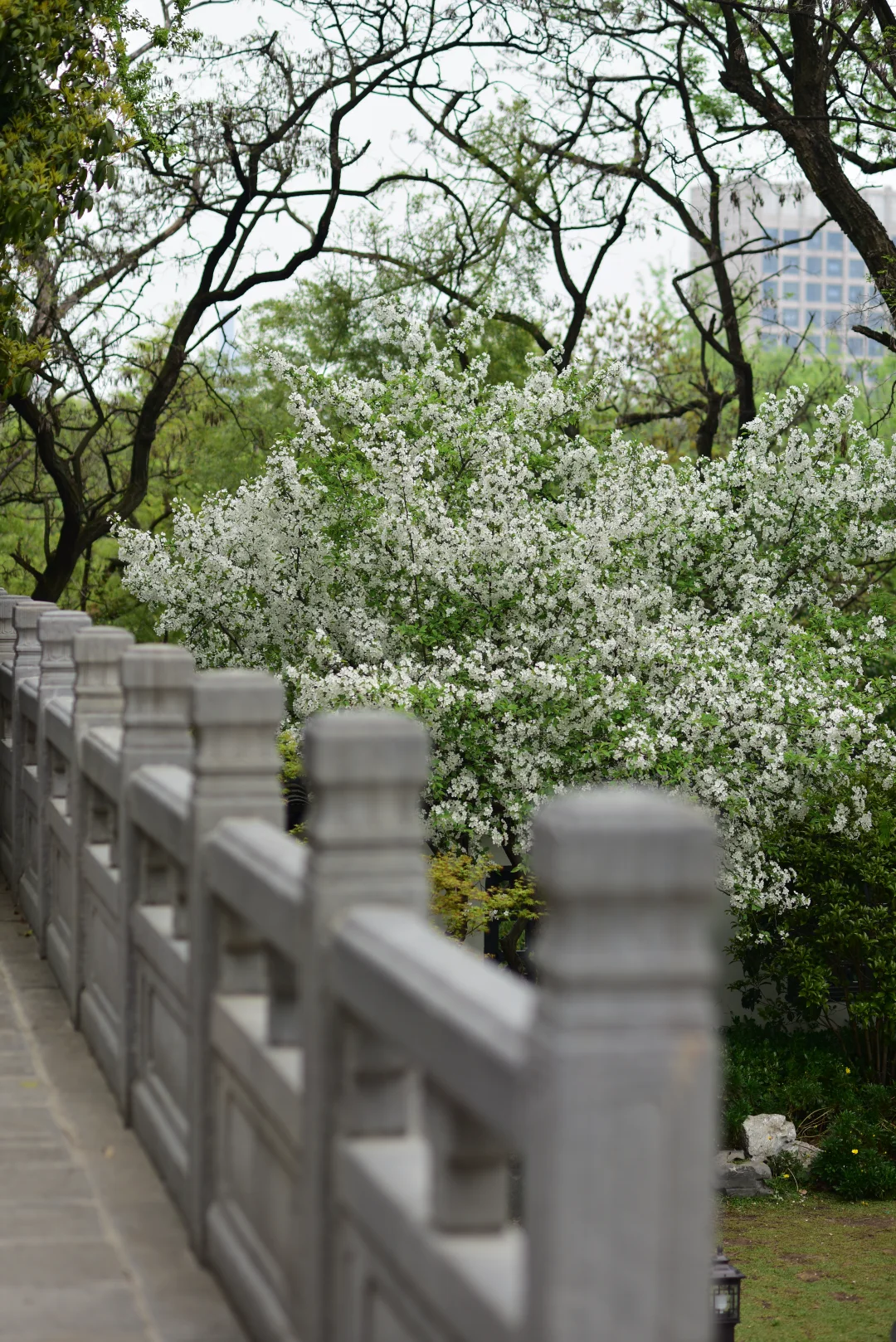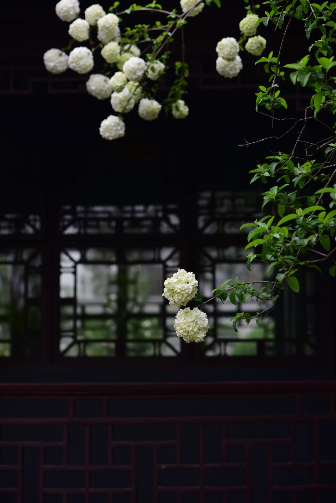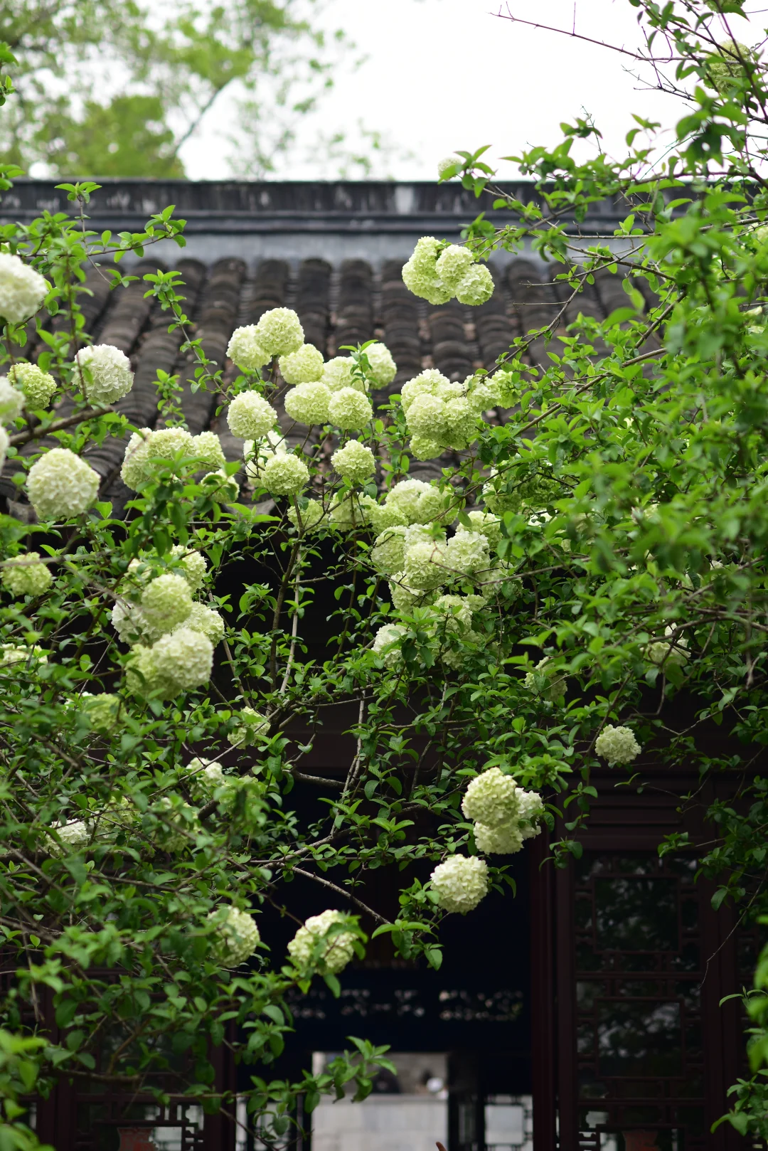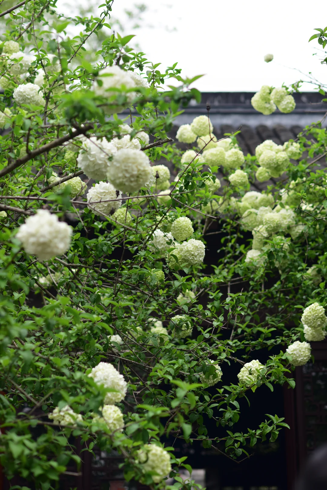 书院后院主树,红墙+白花+飞檐,古风感拉满