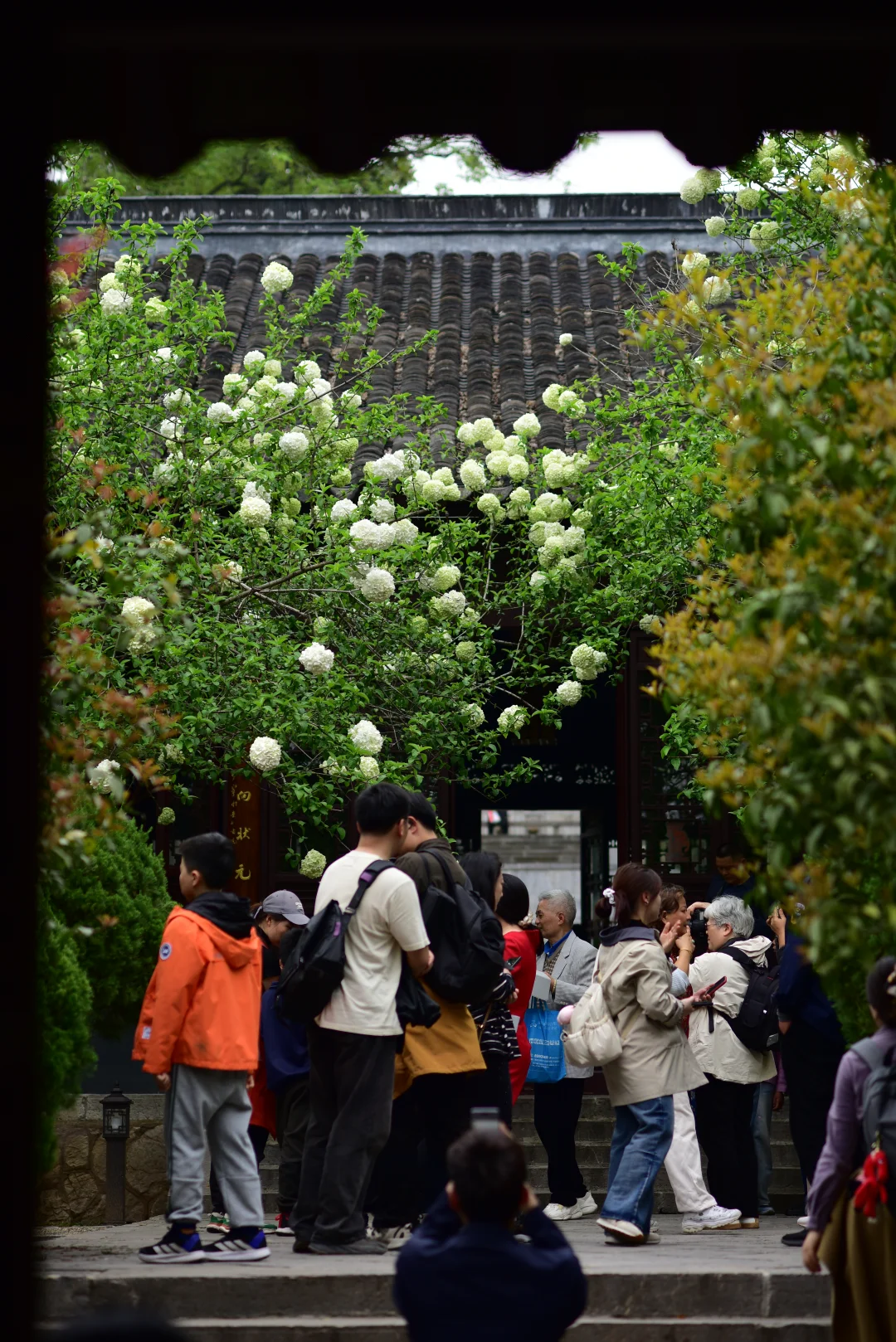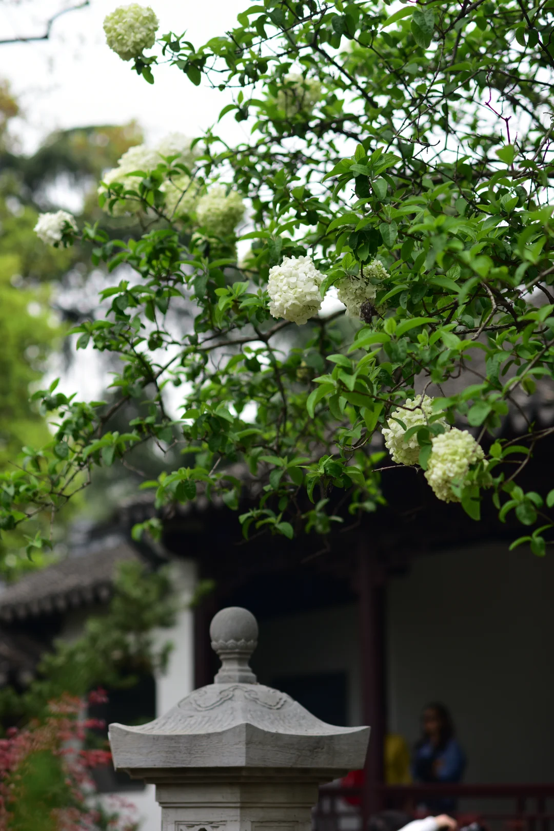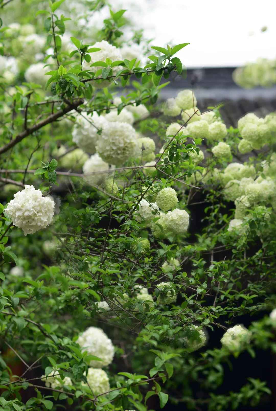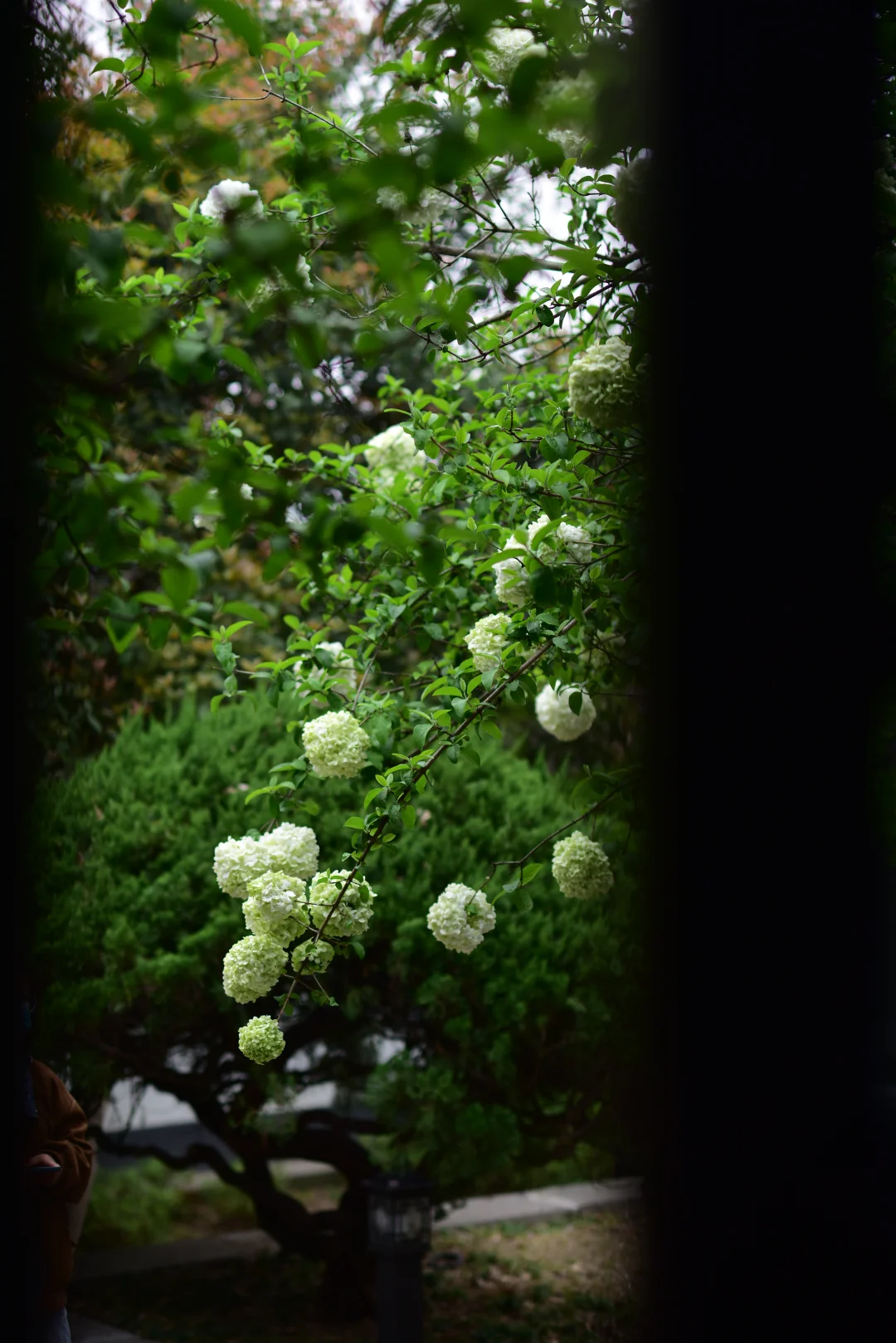 书院后院主树,红墙+白花+飞檐,古风感拉满