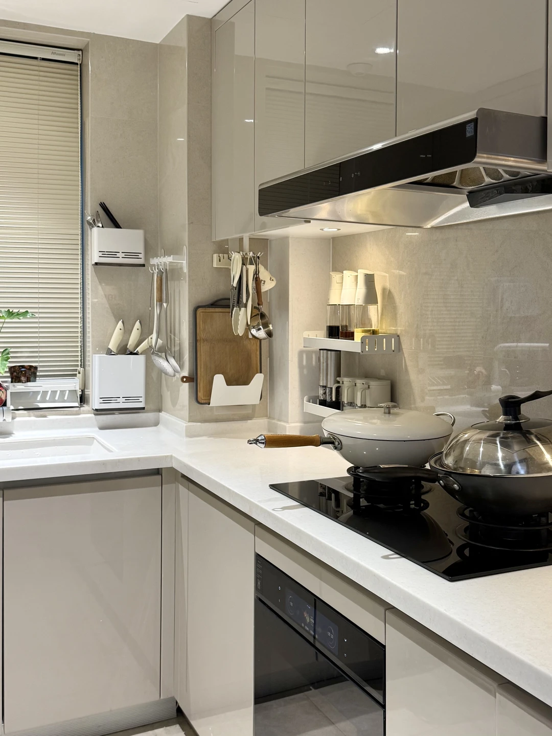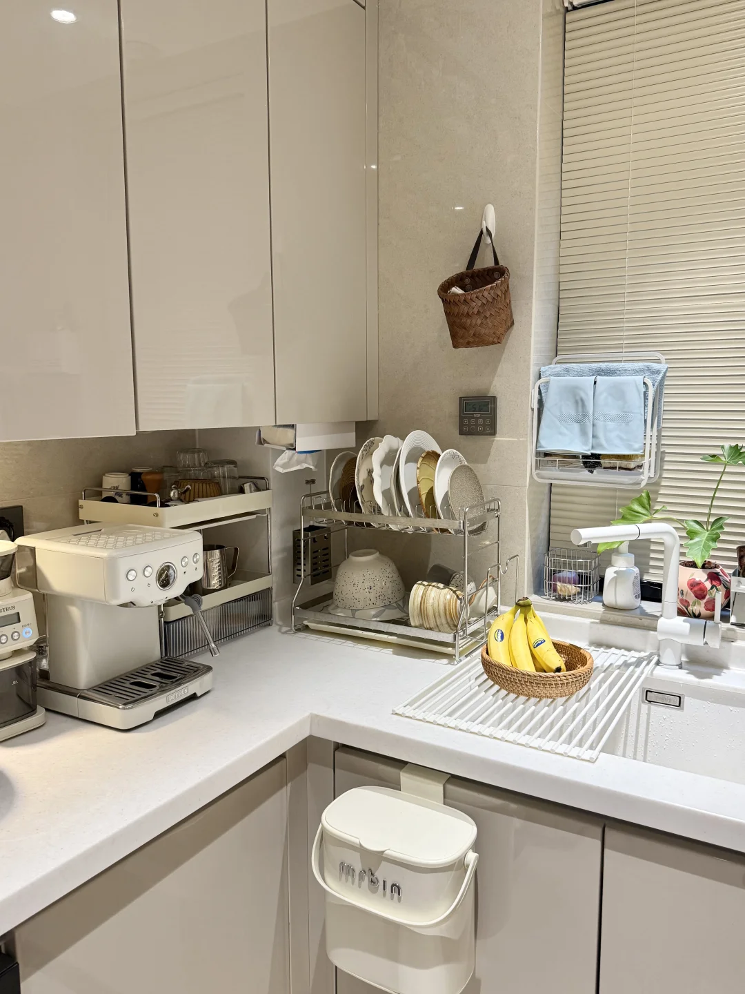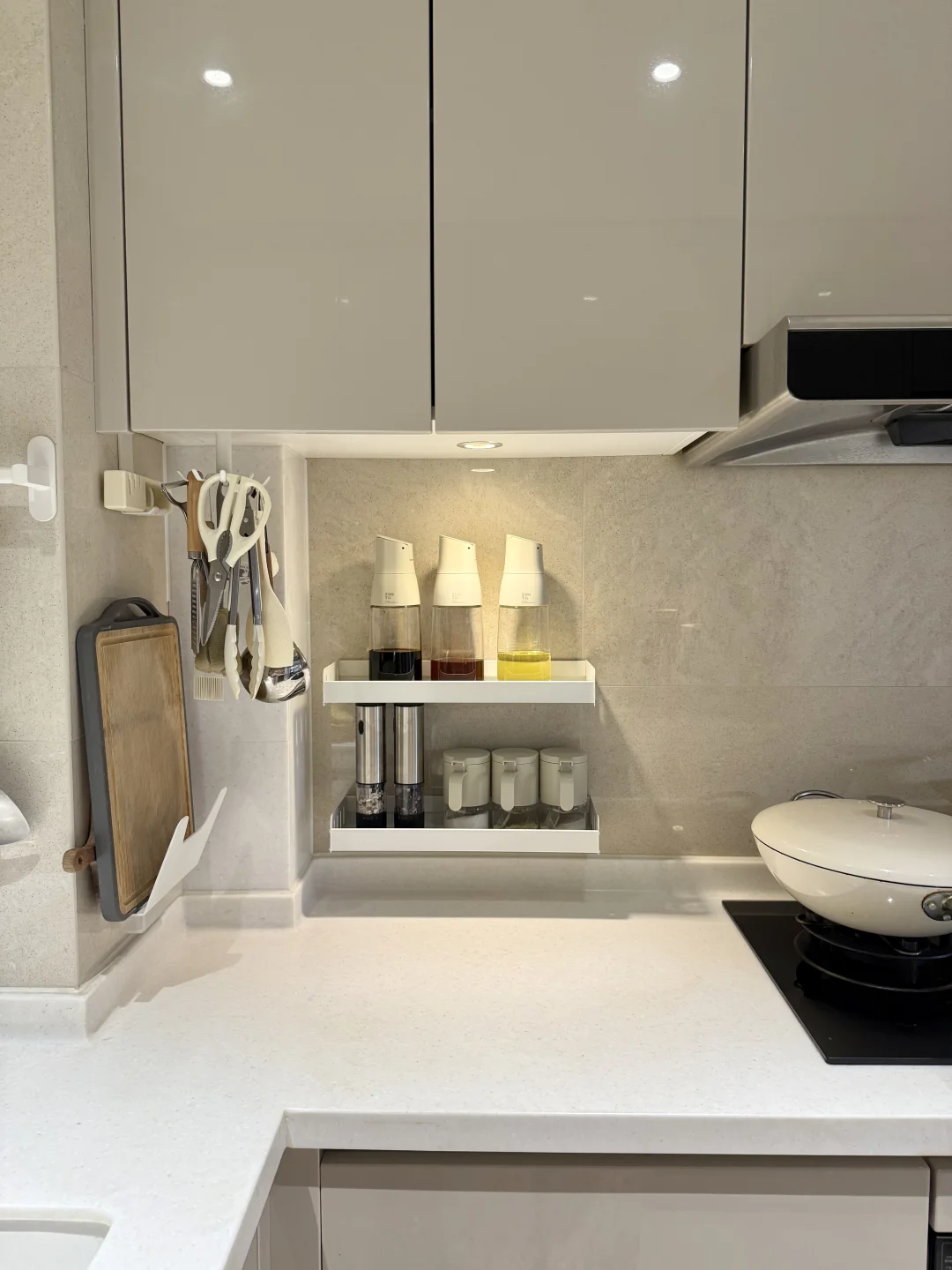 ▫️坚持“能上墙就上墙”的原则,尽量把台面全部清空,日常擦洗更方便,用免打孔胶安装,也不会损伤墙面