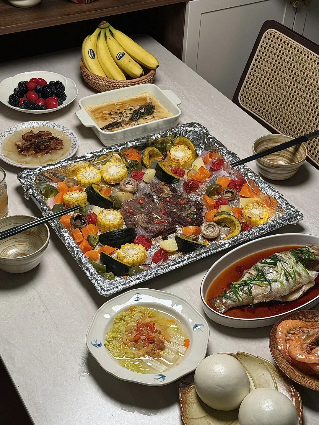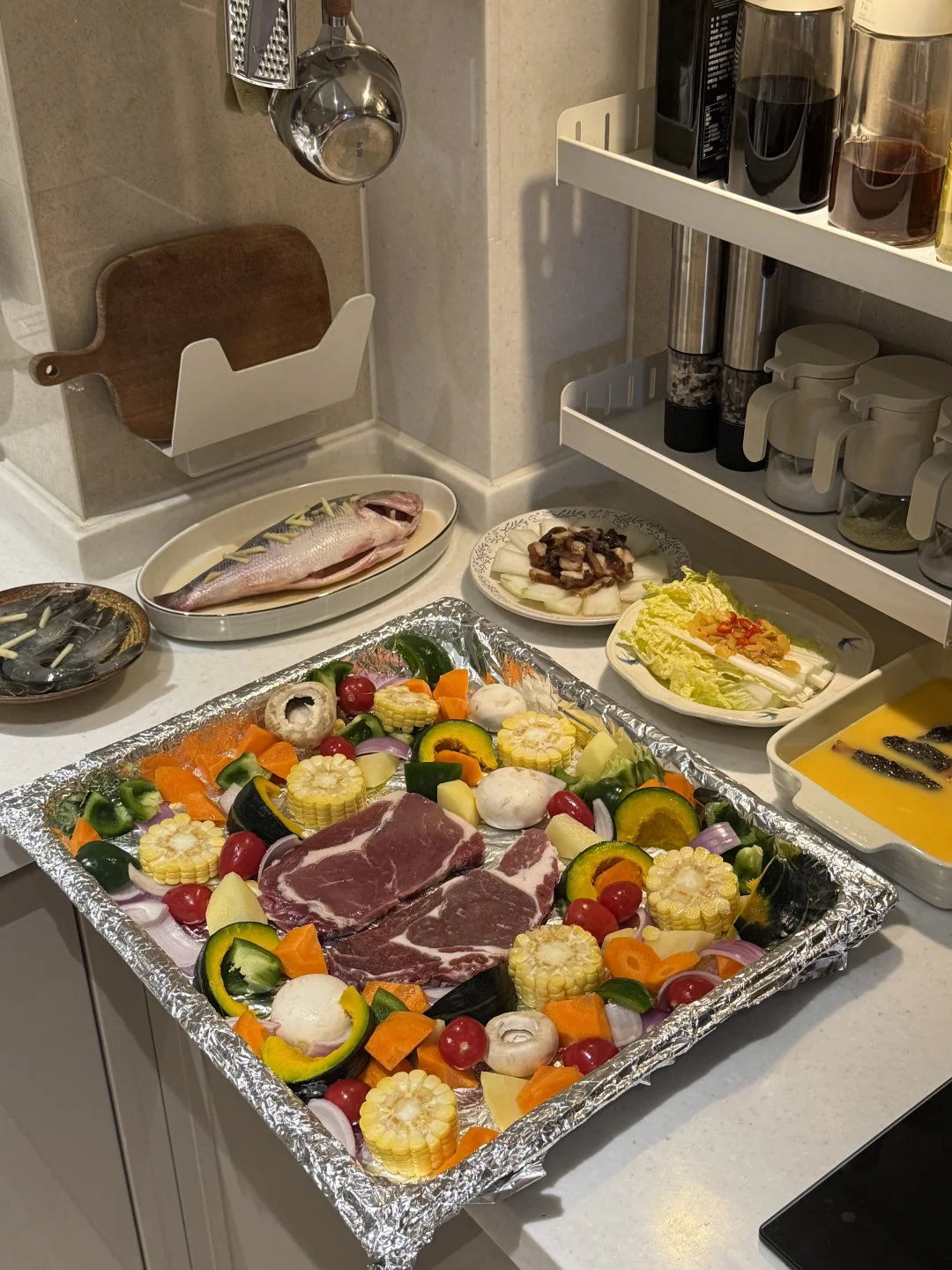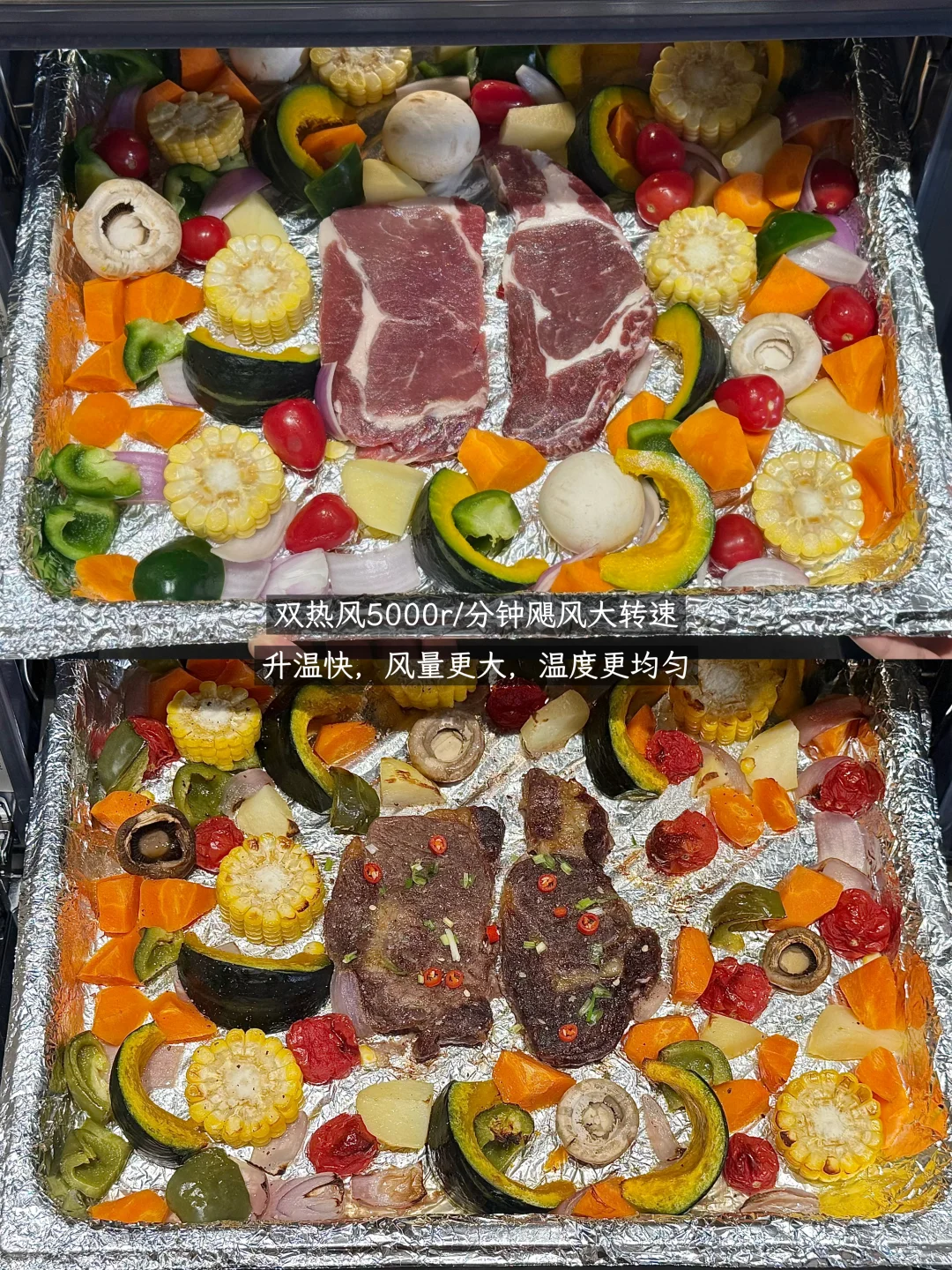 最让我惊喜的是它一机多用,蒸、烤、空气炸一步到位,不用再摆一堆小家电占台面了