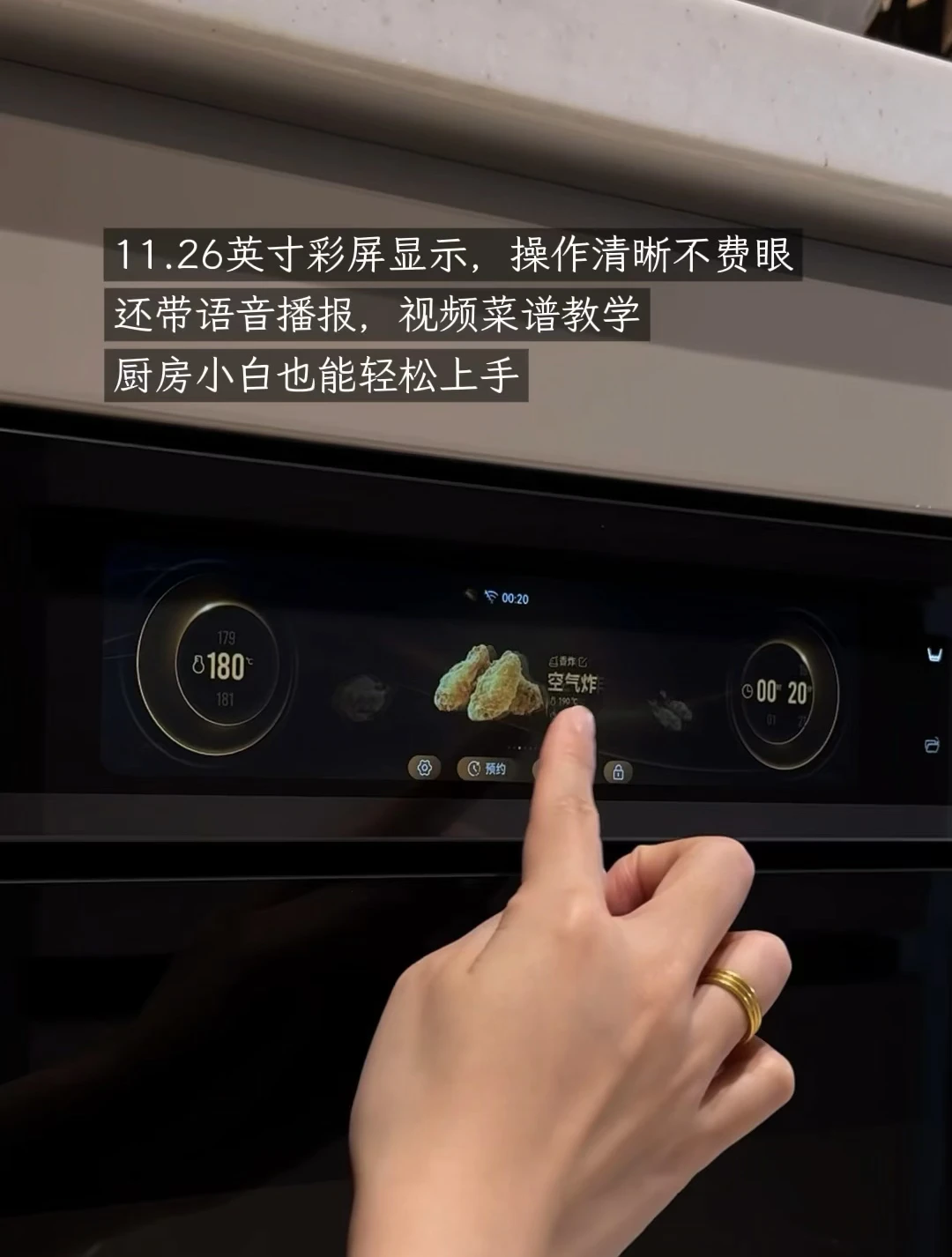 配备11.26英寸大彩屏,操作清晰不费眼,还自带语音播报。更贴心的是有视频菜谱教学,跟着步骤一步步来,厨房小白也能轻松上手哦。龙盾陶瓷内胆太好打理了,油污一擦就干净,再加上一键烘干,不用费心思打理,真的省了好多时间
