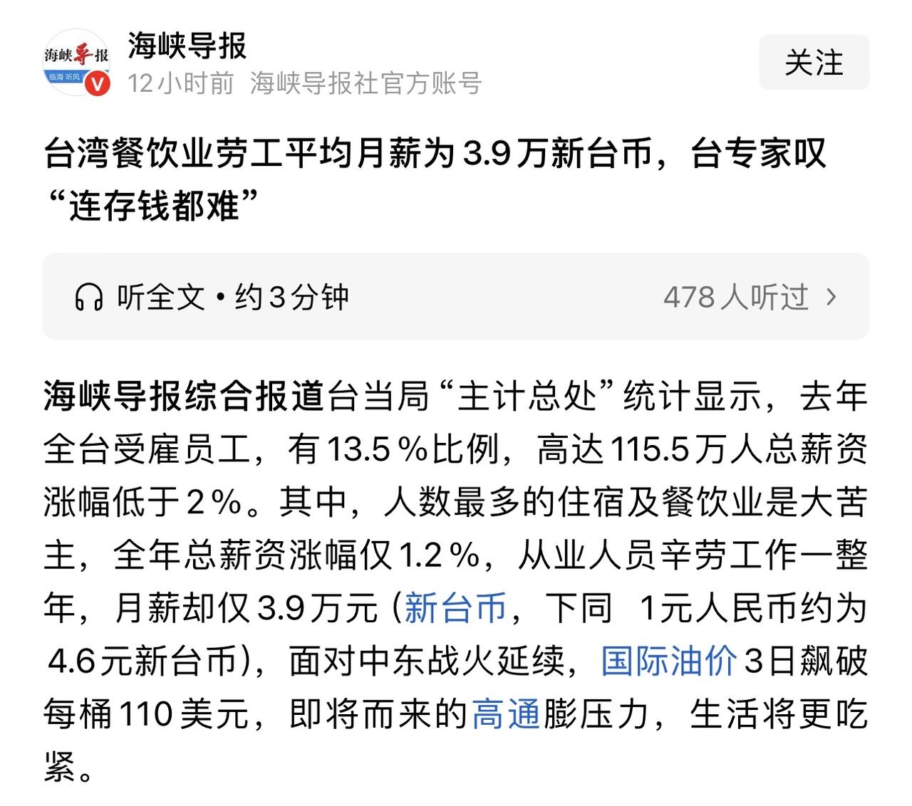 不得不说,台湾那边餐饮行业的工作人员也挺难的,一年下来也就十万元人民币左右。但说句实话,如果台湾服务员那边的待遇换做内地的话,怕是服务员的工作都会抢着做。 毕竟一个月休息8天到10天,社保给你买齐,包吃包住,还有各种节假日福利等等。最关键的是那边几乎都是8小时工作制。加班一定会给加班费。 所以从这一点来看,台湾那边的对劳动人民的保障是挺足的。这一点的话,非常值得我们学习。