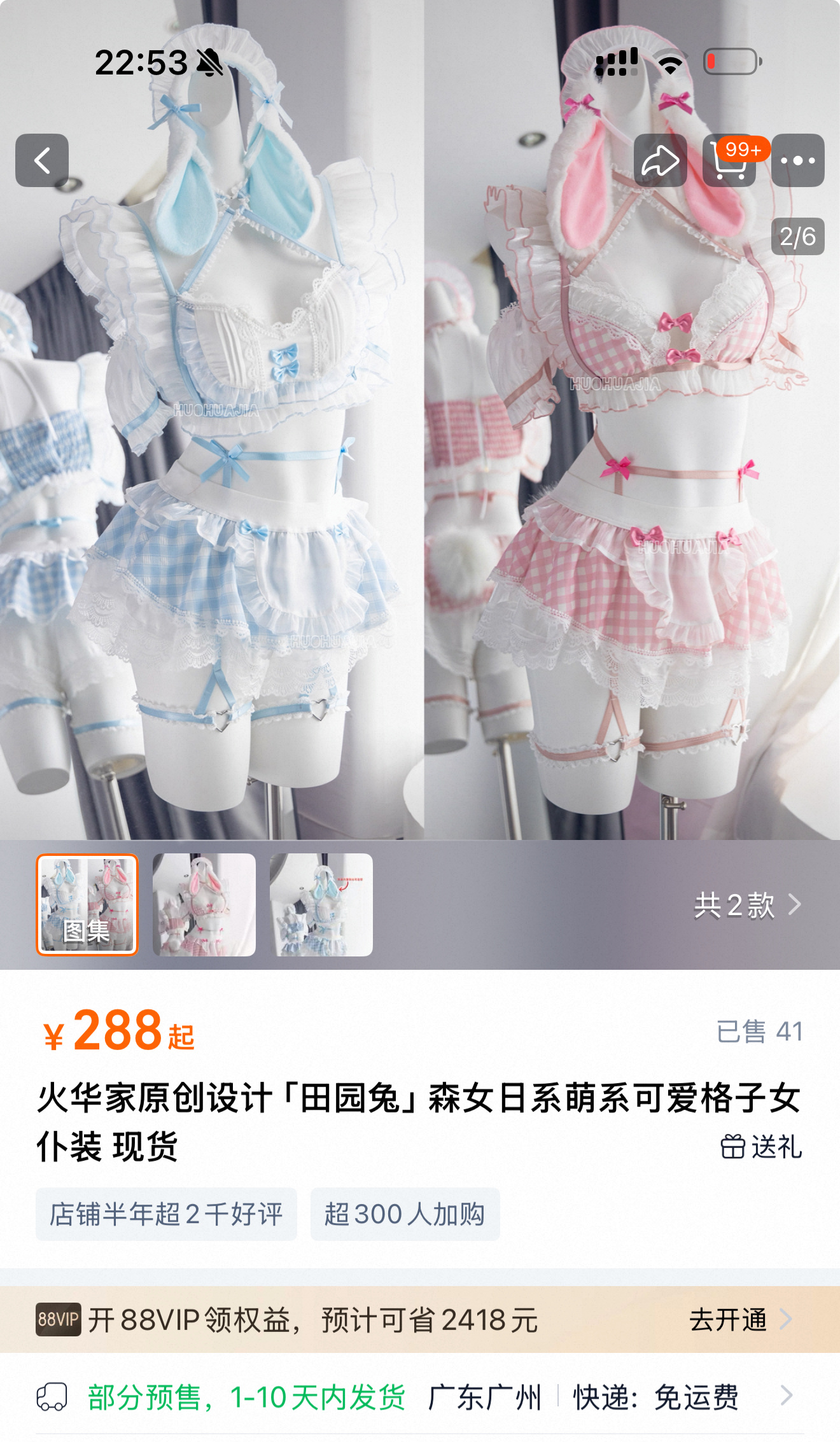 蓝色上线了……老婆们自助下单 燃尽了先睡了 蓝色预售10天(最快参考5天)火华家原创设计 贵11块钱 火华家原创设计 「田园兔」森女日系萌系可爱格子女仆装 现货