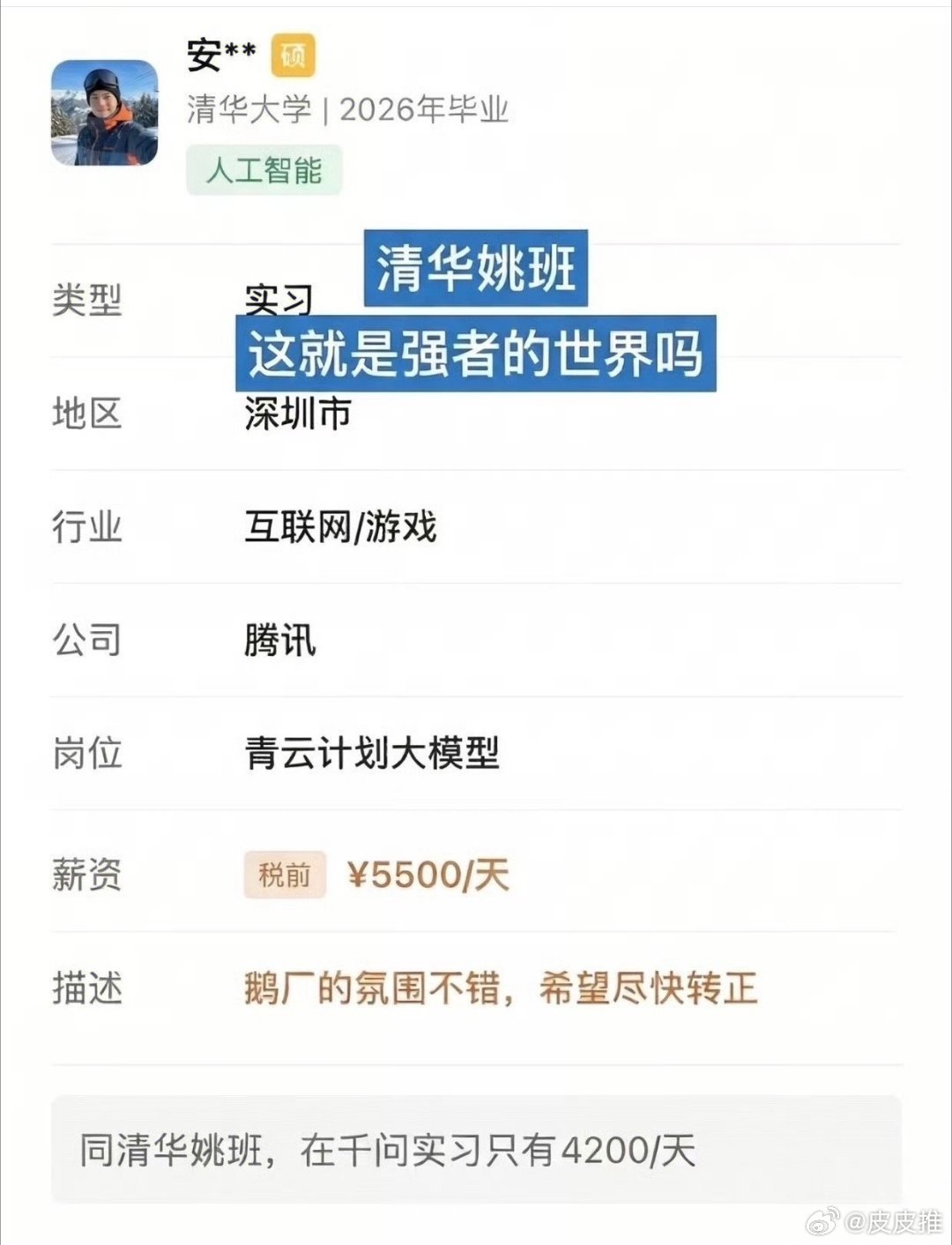 别人都是按月算工资,他这是按天算。。。一天5000-6000,那一个月工资不是轻轻松松10W➕啊。