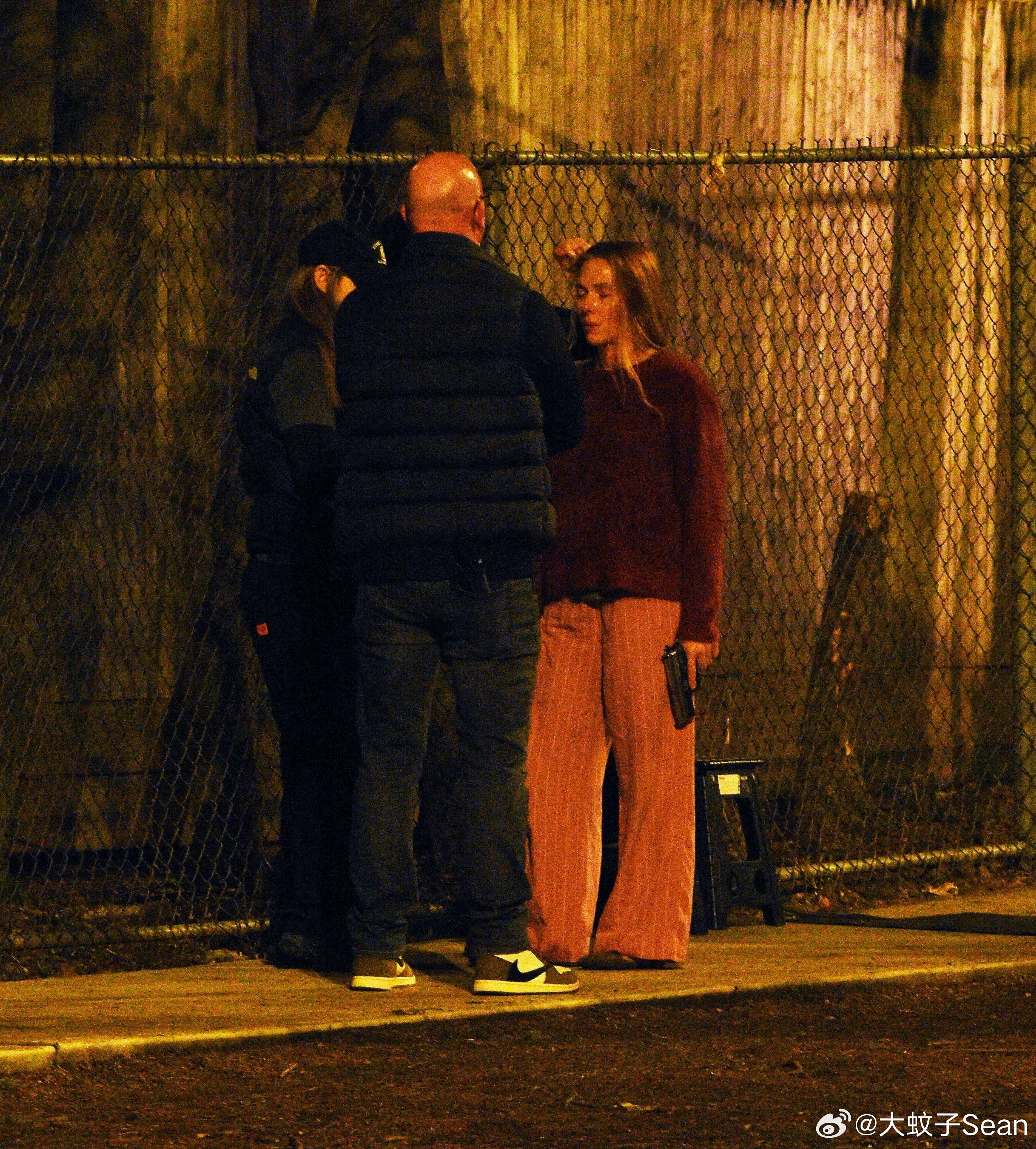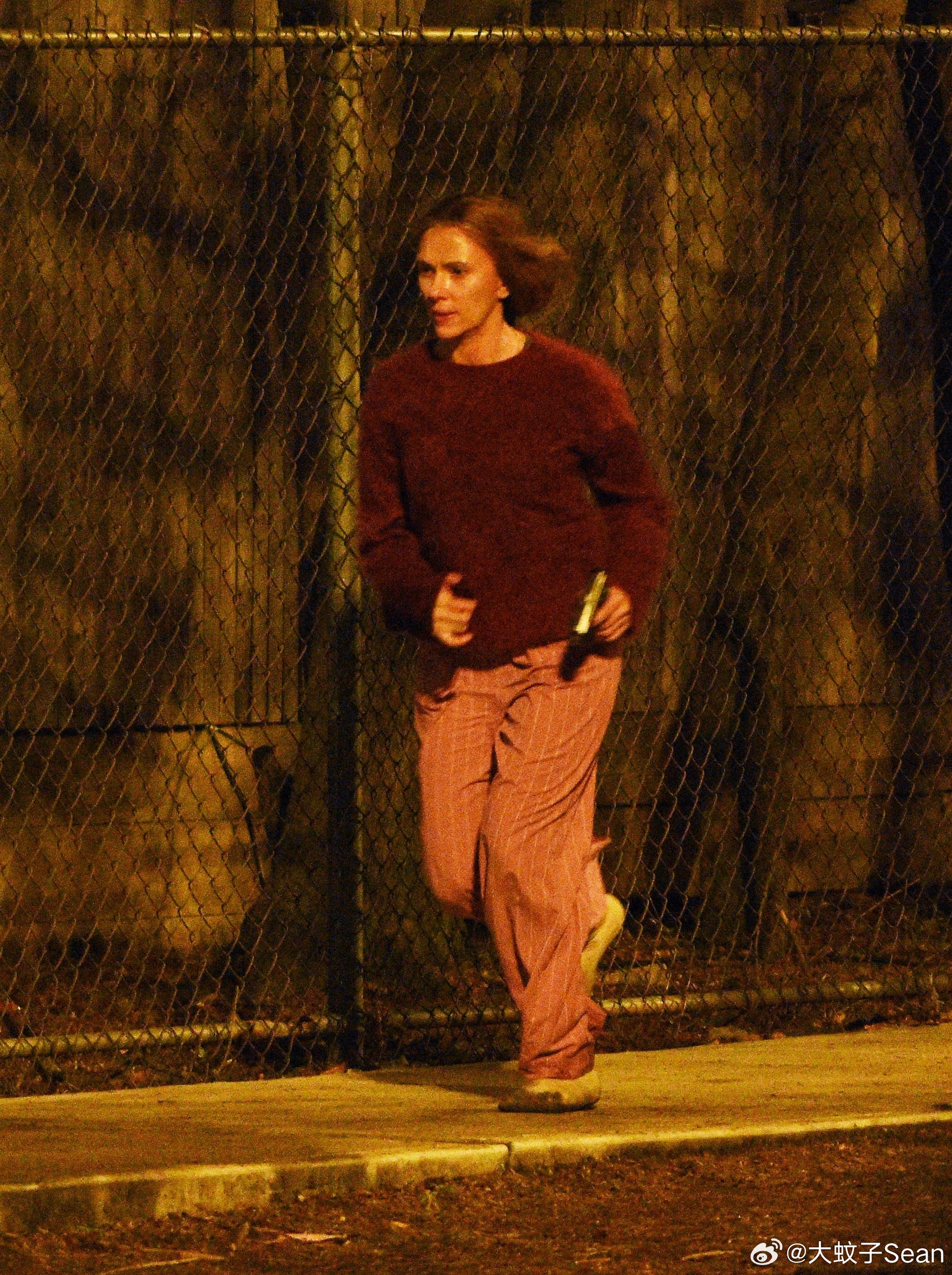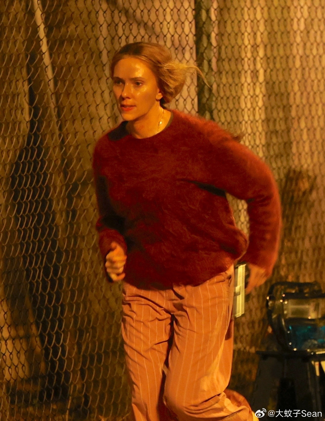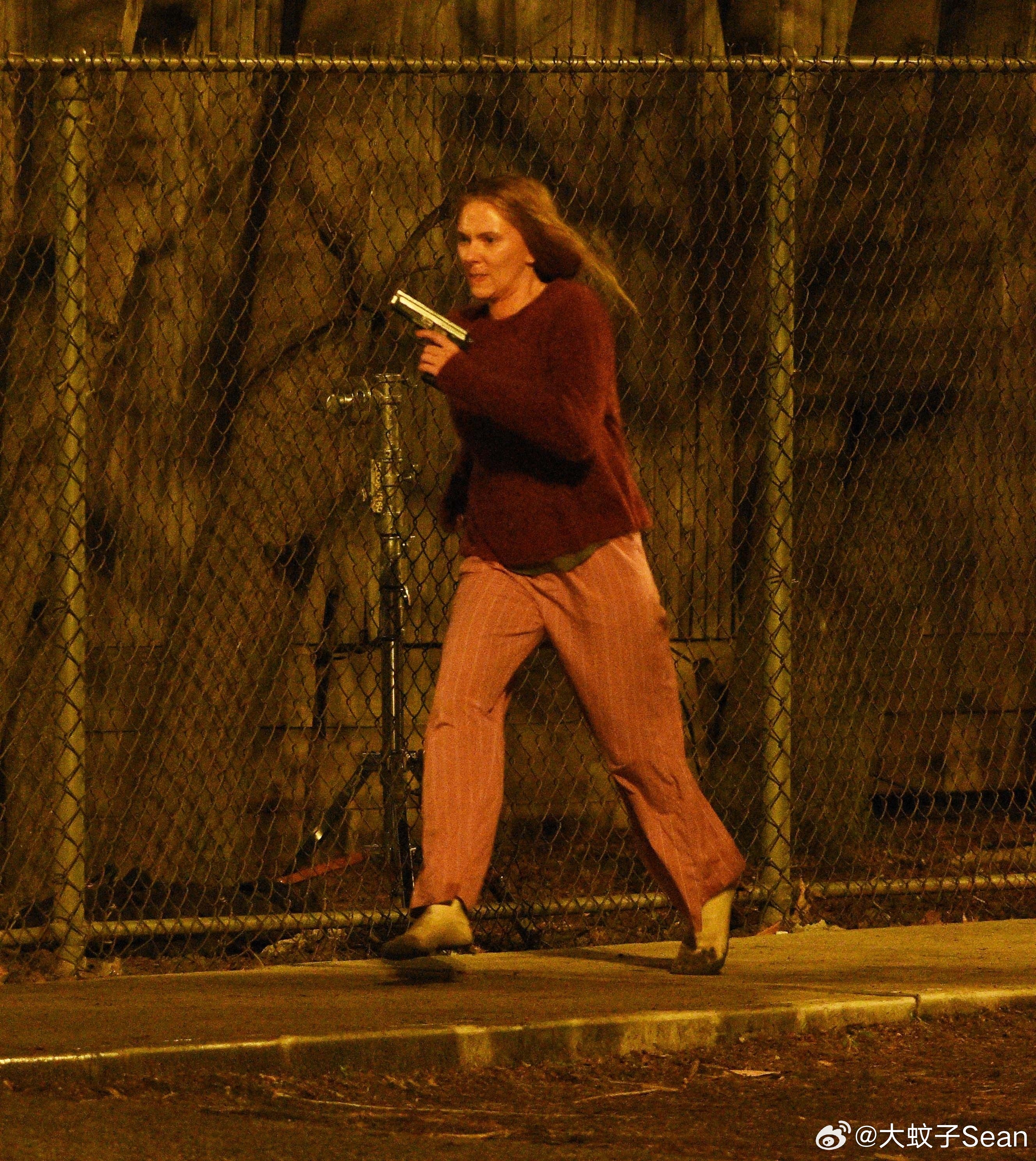 scarlett johansson斯嘉丽约翰逊在纽约为《驱魔人》拍摄夜戏,和替身一起拍摄动作场景,接上之前跑出房子的戏份
