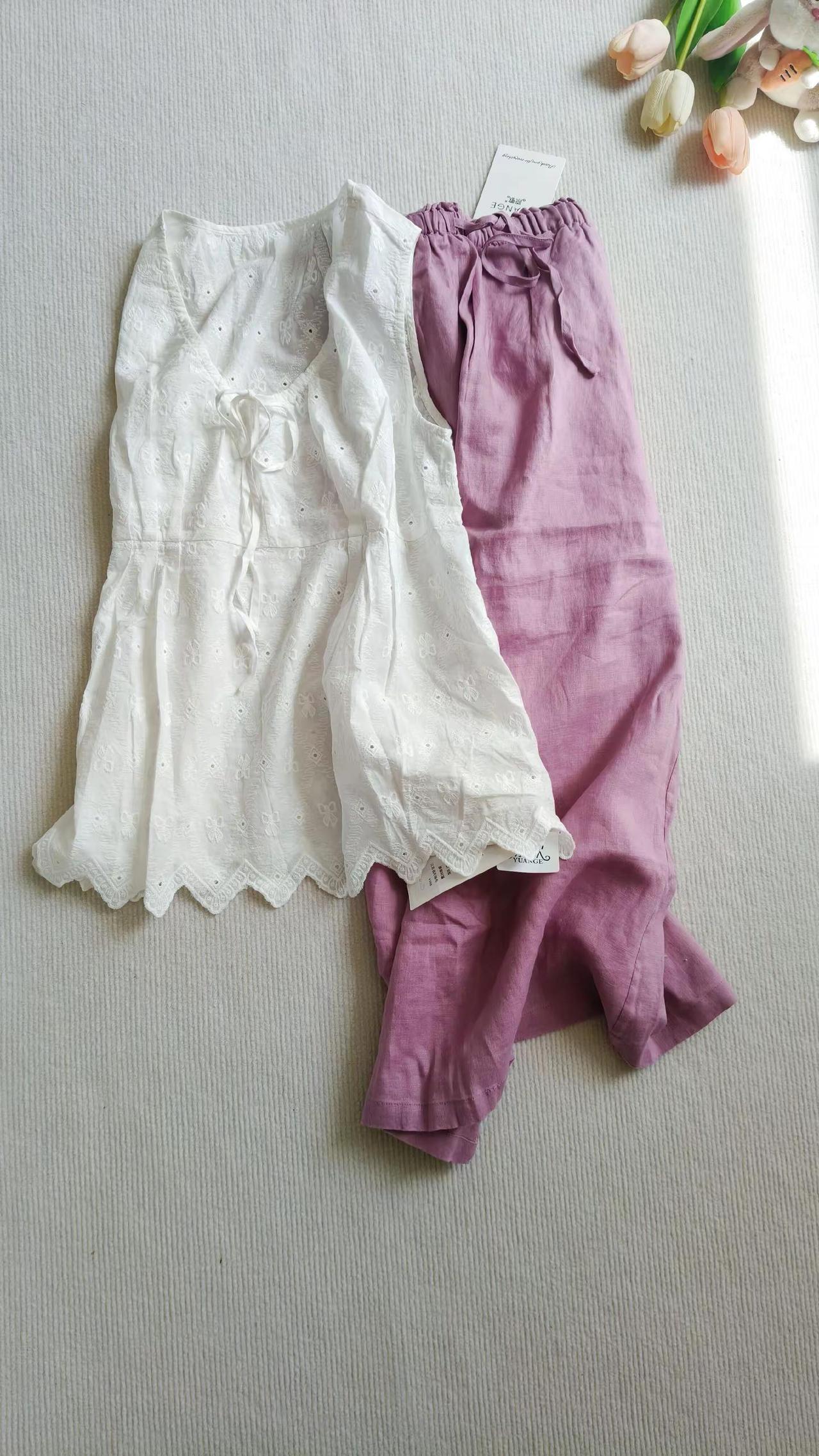 @原歌时装 大静做的衣服喜欢到停不下来,捡漏的白色镂空绣花背心➕100亚麻香芋紫半身裙,这一套都是我的菜,面料也是真心喜欢,爱了爱了原歌时装 夏季穿搭 半身裙 穿搭