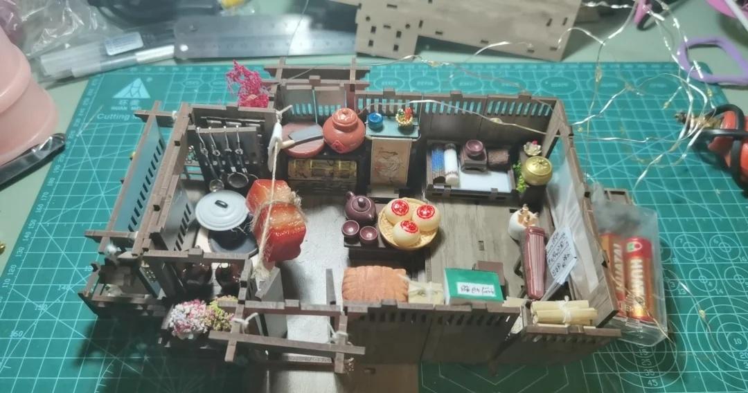 莲花楼内部装修中 我的微缩小世界 成毅 莲花楼[eoi] 一楼装修差不多了,准备开始按灯