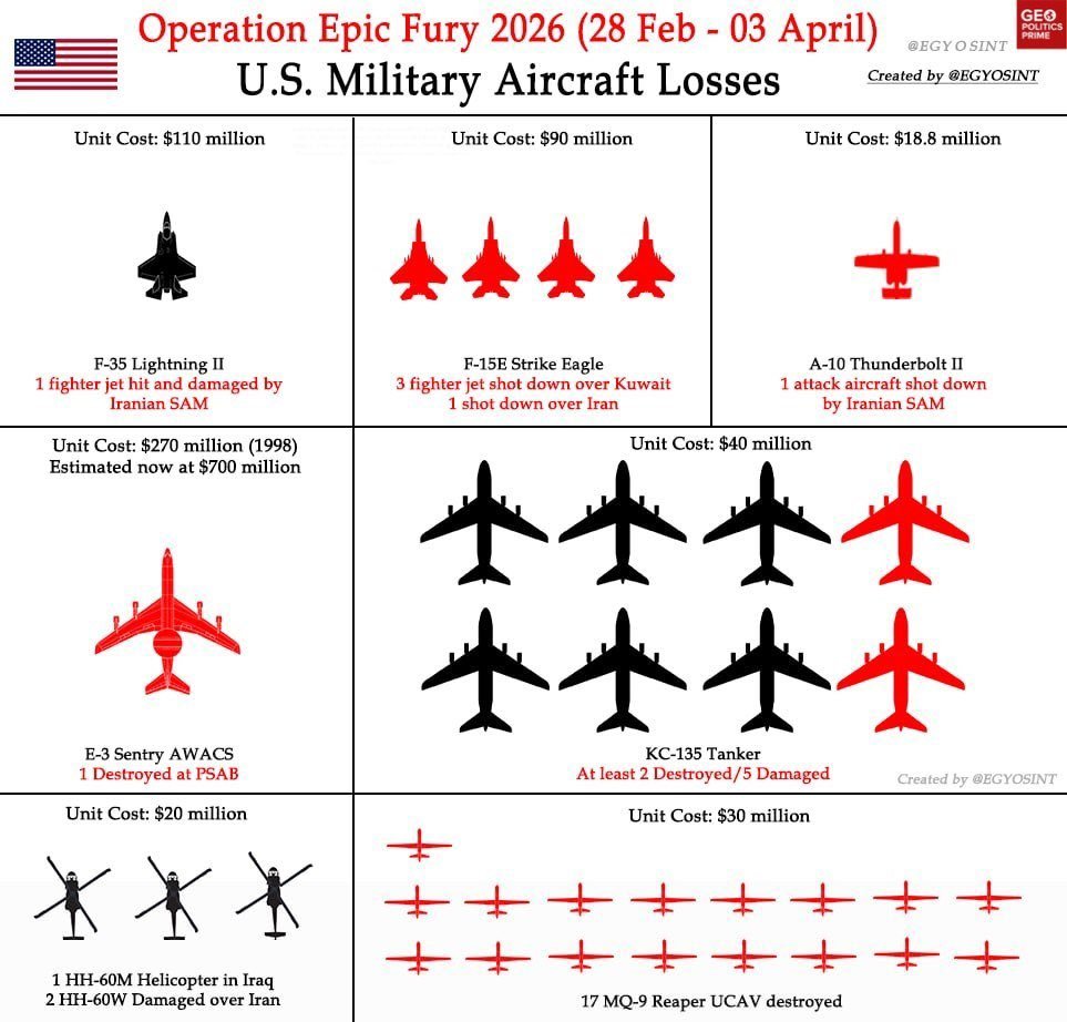 自伊朗战争开始以来,美国空军损失惨重 开源情报 (OSINT) 跟踪和飞行监控数据显示,估计总损失超过 20 亿美元,而更换成本可能更高。