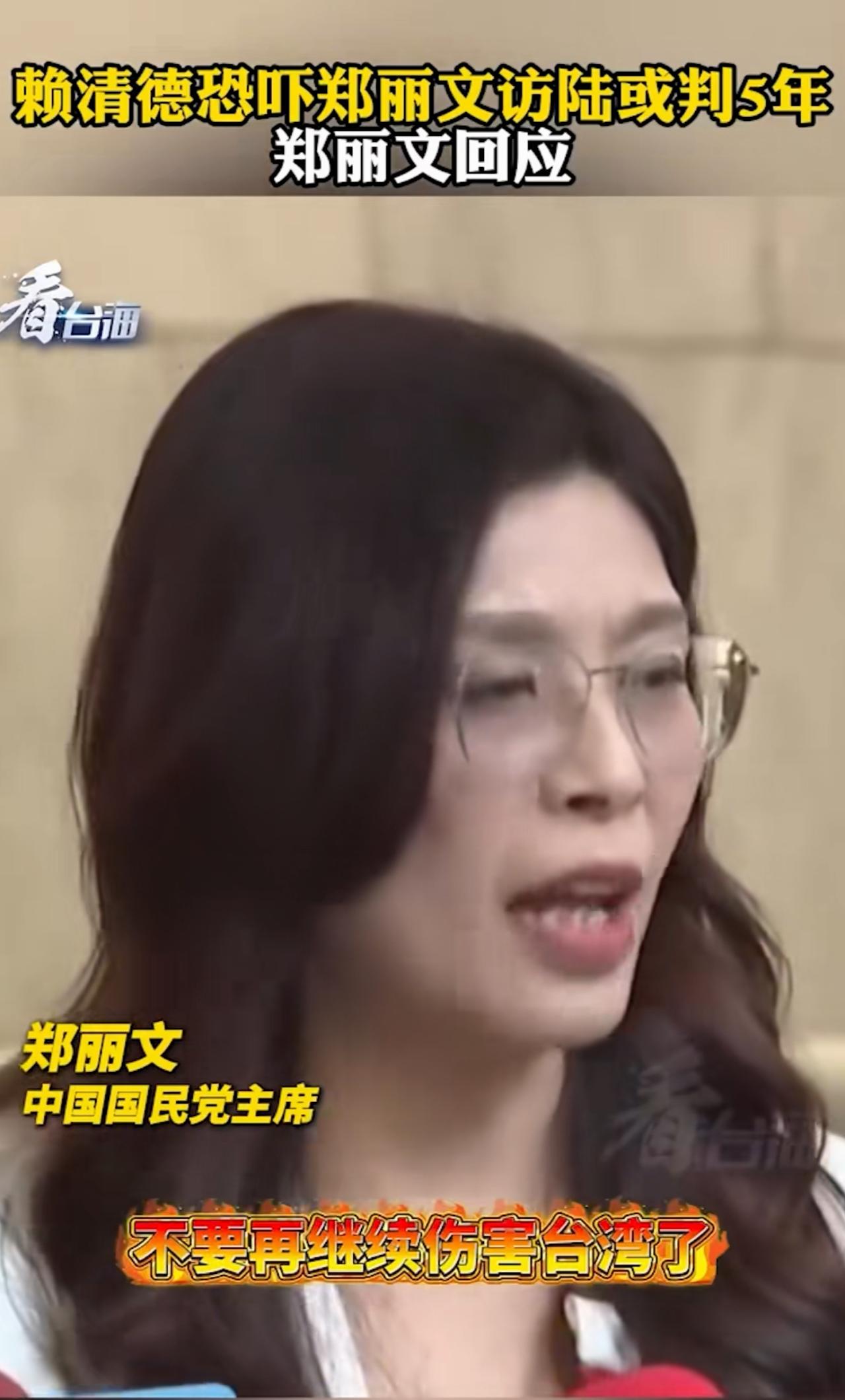 赖清德针对郑丽文访陆发声恐吓:访陆或判五年。 对此,郑丽文呼吁不要再伤害台湾。 这就是绿营营造的绿色恐怖!全世界都在和大陆交流,唯独这群数典忘祖之辈不愿见两岸和平交流,行恐吓之行径。这已经是疯魔状态了!他们在怕什么?怕到连正常交流,友好往来都不允许。 这样的恐吓是徒劳的,更阻止不了两岸的正常往来。只会造成台湾省内部撕裂,营造绿色恐怖气氛。 “欲使其灭亡,必先使其疯狂”,如此疯狂的作态,灭亡时间也必快到了。