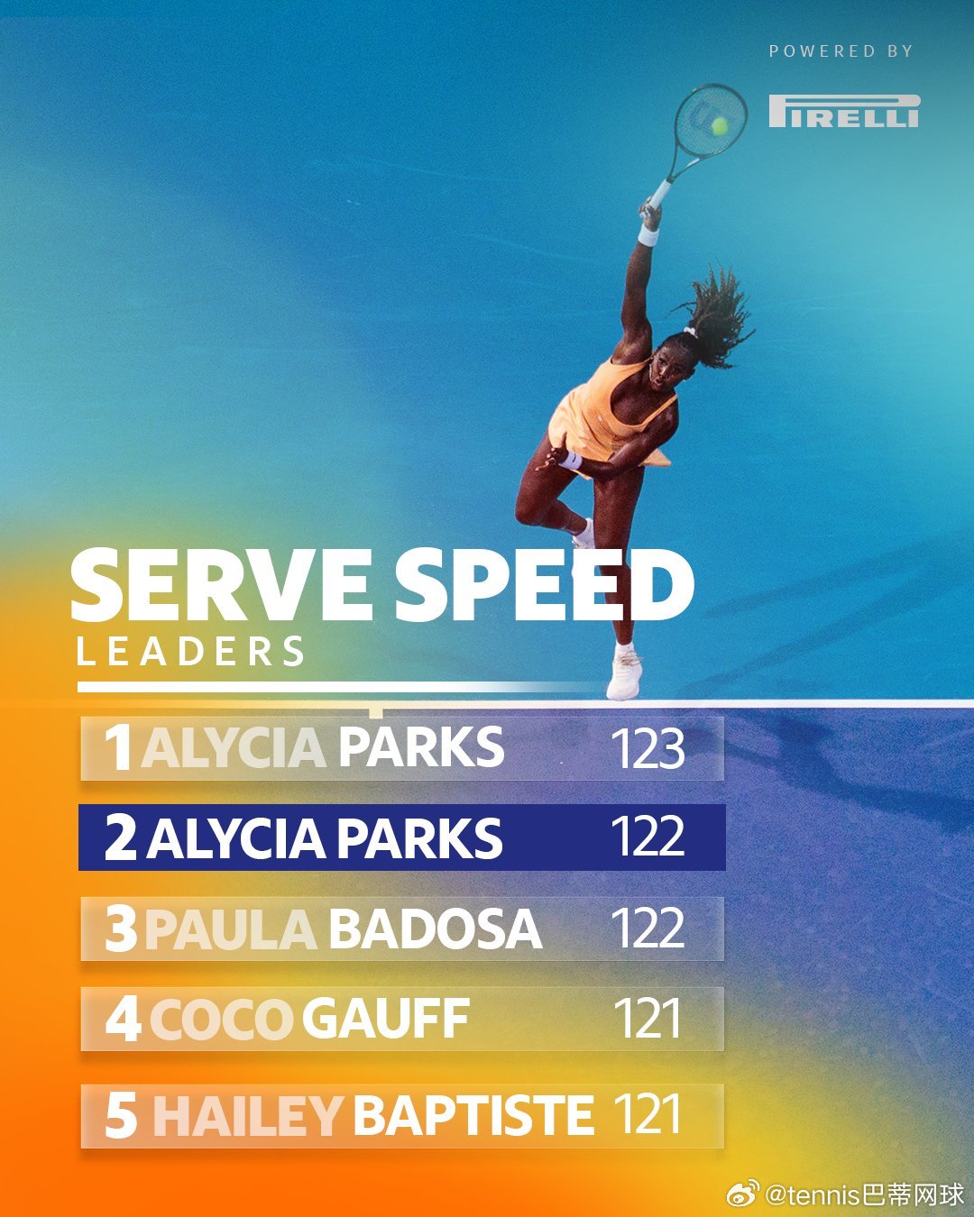 迈阿密官方公布今年发球最快男女单top5