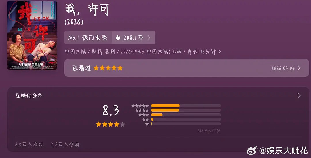 文淇《我,许可》开分8.3拿下今年国产片最高分,口碑持续发酵中,感觉这部电影算不算清明的小黑马?