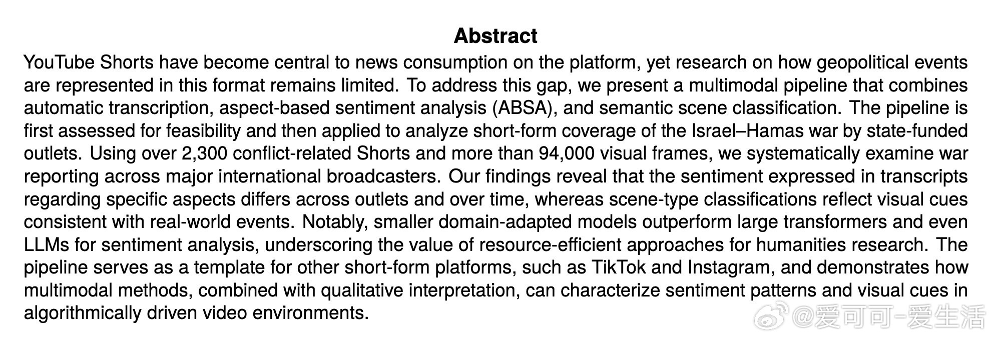 [CL]《Multimodal Analysis of State-Funded News Coverage of the Israel-Hamas War on YouTube Shorts》D Miehling, S Kuebler [Indiana University] (2026)