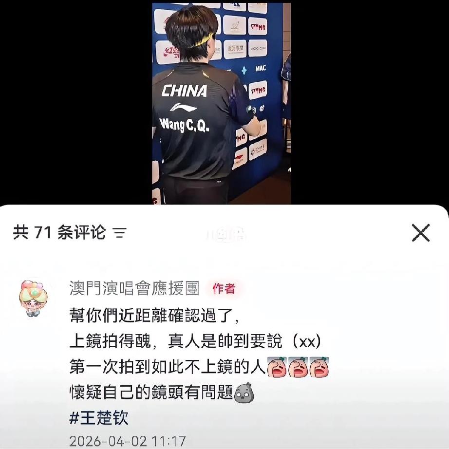 王楚钦,有网友说你上镜拍的丑 说第一次拍到这么不上镜的人 怀疑自己的镜头有问题 这位网友,说的是王楚钦吗? 孩子人帅,心善,球好,有编制,有学历,有代言,有龙哥,有龙妹,,, 怪不得有些人羡慕嫉妒恨呢