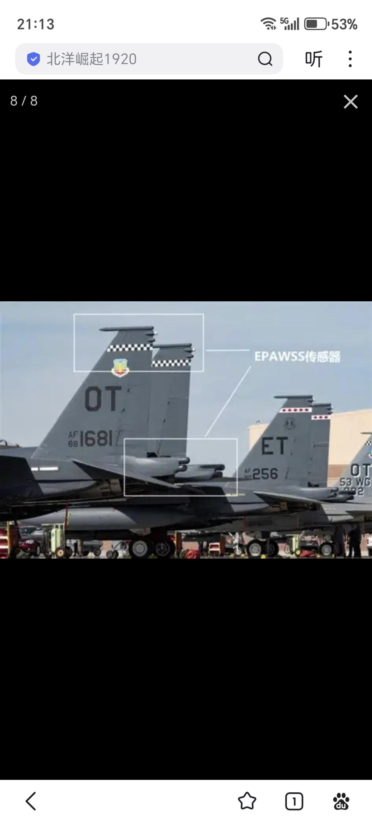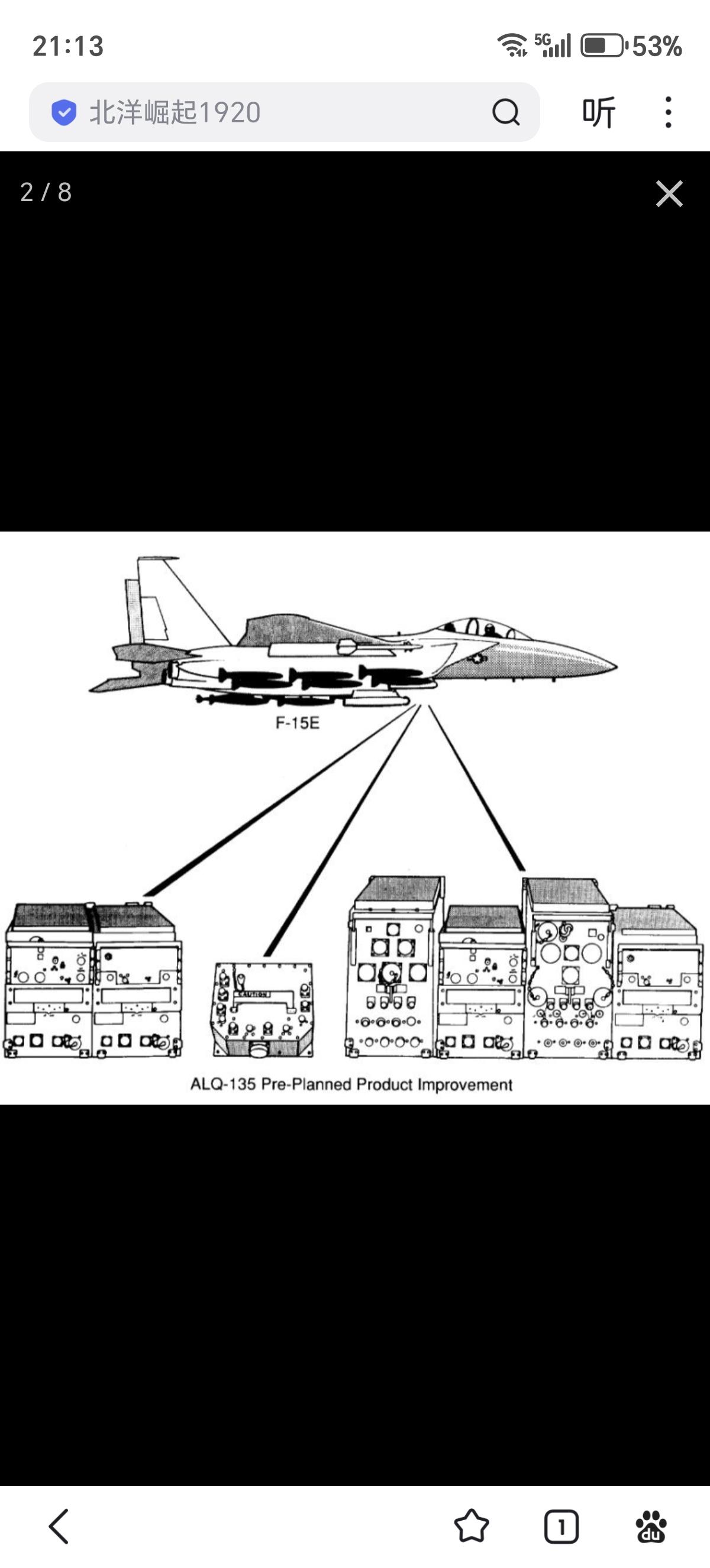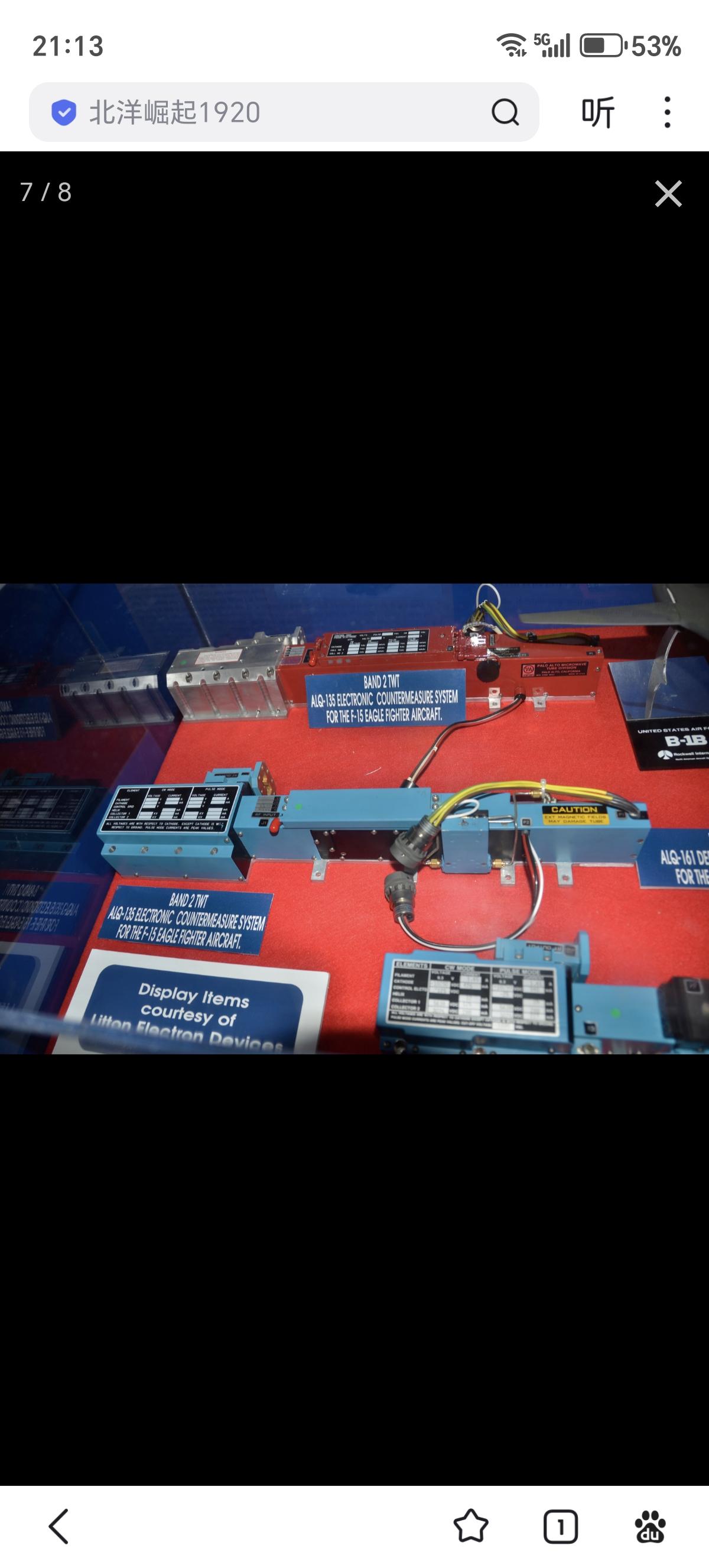 本次被击落残骸中找到了一块AN/ALQ-135电子战对抗天线。AN/ALQ-135是由诺斯罗普·格鲁曼公司为F15鹰式及其衍生型号的战术电子战系统开发的一种内置电子对抗干扰系统。该系统能有效干扰和跟踪多枚防空导弹及其他威胁。自20世纪70年代以来,该系统一直是F15飞机的组成部分,并持续进行升级改进,包括处理器升级、耐久性提升和减重。该系统已安装在超过500架F15上,其中波段3系统于1988年首次安装,波段1.5系统则于2000年首次安装。 现代AN/ALQ-135系统由五个组件构成,涵盖波段1.5和波段3设备,以覆盖2至20吉赫兹的全频谱威胁。波段1.5覆盖2至10吉赫兹的频率范围,波段3覆盖10至20吉赫兹的频率范围。具体而言,该系统包含B3射频放大器、B3控制振荡器、B1.5射频放大器、B1.5控制振荡器以及LRU14单元。波段1.5和波段3设备共享百分之70的硬件,这使后勤维护更为简便。两个波段系统均能干扰高波段和低波段威胁。 在尺寸与重量方面,B3射频放大器重44公斤,体积为0.0333立方米,尺寸为300毫米乘200毫米乘550毫米。B3控制振荡器重53公斤,体积为0.03946立方米,尺寸为360毫米乘200毫米乘550毫米。B1.5射频放大器重43公斤,体积为0.0333立方米,尺寸为300毫米乘200毫米乘550毫米。B1.5控制振荡器重45公斤,体积为0.03946立方米,尺寸为360毫米乘200毫米乘550毫米。LRU14子系统重4.8公斤,体积为0.00320立方米,尺寸为89毫米乘210毫米乘171毫米。 该系统是F15战术电子战系统的一部分,该套件还包括AN/ALR56雷达告警接收器、AN/ALQ128电子战告警装置以及AN/ALE45对抗措施投放系统。AN/ALQ135是一种由AN/ALR56雷达告警接收器计算机控制的大功率自动雷达干扰系统,能够360度全方位干扰脉冲和连续波威胁雷达,并具备边干扰边监视的能力,拥有大型集成威胁库和内置测试功能。 在海湾战争期间,装备AN/ALQ135的飞机累计执行超过6600小时的战斗任务,没有飞机因该系统所防护的威胁而损失。该系统为美国飞机的生产已经结束,但升级系统大约在2013年前曾为韩国的F15K继续生产。该系统的成功也体现在F15K和F15SG等国际型号上,这些型号通过引入新系统使飞机焕发新生美国空军于2016年11月将价值4.788亿美元的鹰式被动主动告警与持续系统工程与制造开发合同授予波音和BAE系统公司,标志着该系统将逐步被新的AN/ALQ-250系统EPAWSS取代。AN/ALQ-250系统外观为两个黑色天线球。