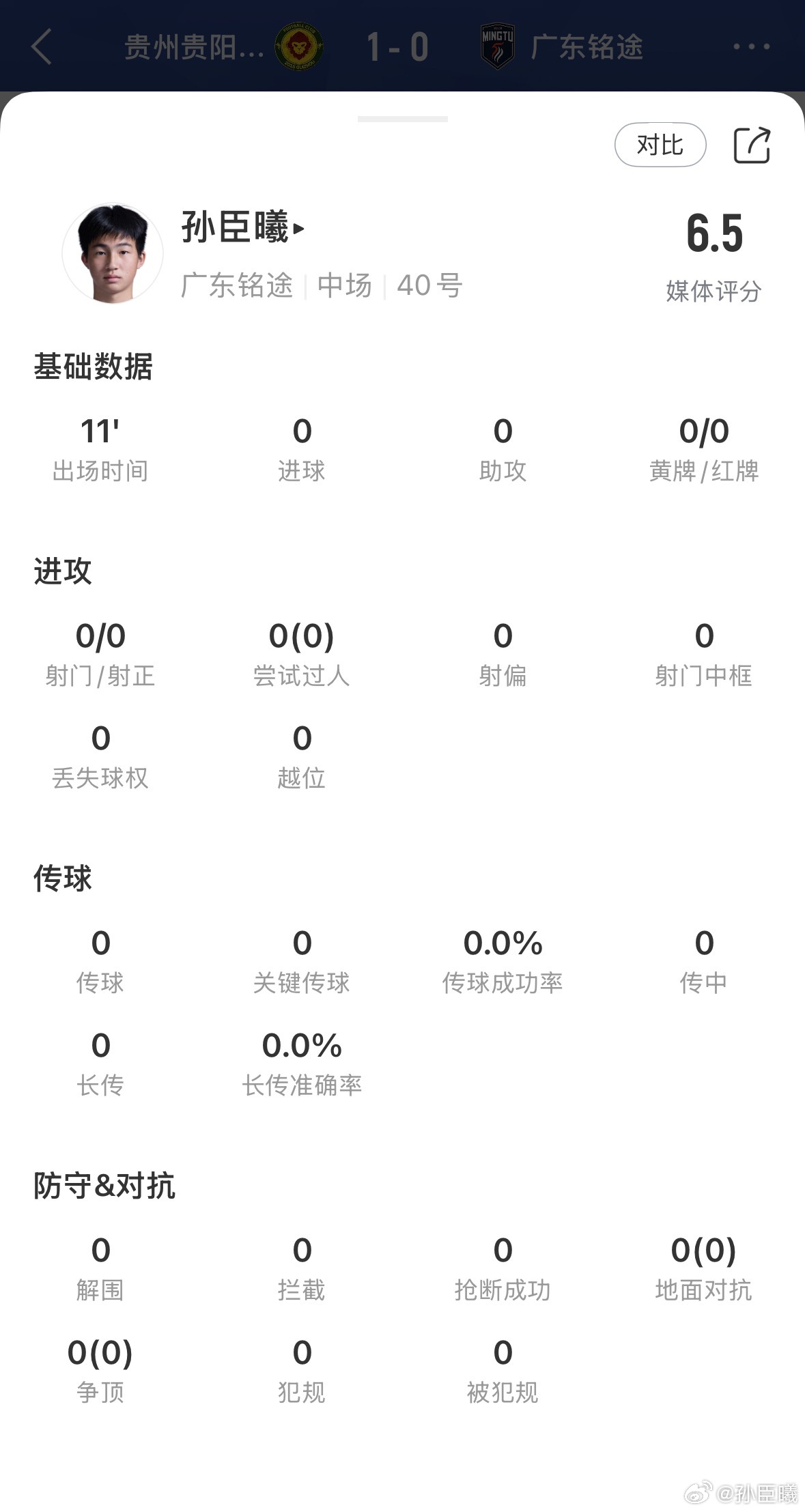 首秀上场,因为比分落后,时间较紧,对方以拖延为主,本方大脚为主,基本没有触球过,未对球队有所太大帮助,媒体评分6.5分.接下来的场次,看什么时候第一个进球和助攻什么时候到来.