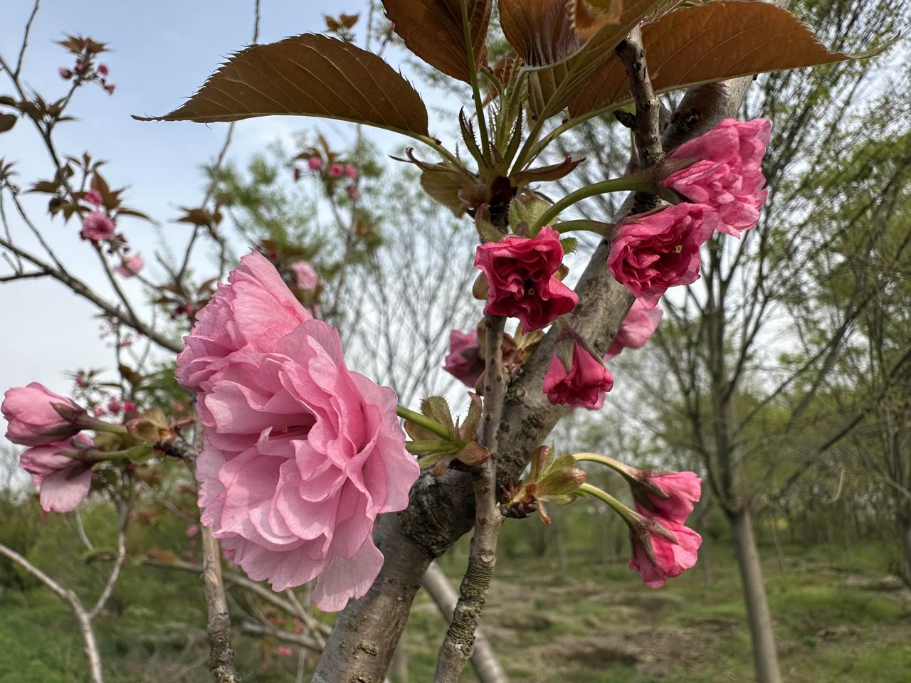 我家的樱花大道,春日里的浪漫 又到了樱花盛开的时节,我家种的是晚樱,恰逢清明节前后,正开得轰轰烈烈,满树繁花格外招人喜爱。 当初设计师提议,把家门口的道路两侧种上樱花,打造一条专属的樱花大道,如今真的成了现实。当初设计师设计的是早樱,花多而呈白色,我偏爱晚樱是有原因的,它的花苞初现时是浓郁的紫红色,慢慢舒展绽放,花瓣层层叠叠,花朵比普通樱花大上不少,完全盛开后就变成了温柔的粉红色,粉嫩嫩的模样看着就心生欢喜,有一种喜庆的感觉。伸手轻轻触碰花瓣,触感像丝绸一样顺滑柔软,细腻得让人舍不得松手。 为了让这条大道更有氛围感,特意修剪了路旁的樱花树,枝桠交错相连,刚好形成一个能过一辆车的樱花拱门,妥妥的迎宾既视感。 这几十棵晚樱,是十年前亲手栽下的,历经十年精心培育,一年比一年长势好,花开得也一年比一年繁盛。每年花期一到,满树粉白紫红交织,风一吹花瓣簌簌飘落,美得像童话里的场景。 如今这条家门口的樱花大道,成了附近小有名气的网红打卡点,不少游人特意赶来拍照留念,看着大家在花下驻足欣赏,心里满是欣慰。十年等待,终得这一路繁花,漫步在樱花树下便是春日里最好的治愈。