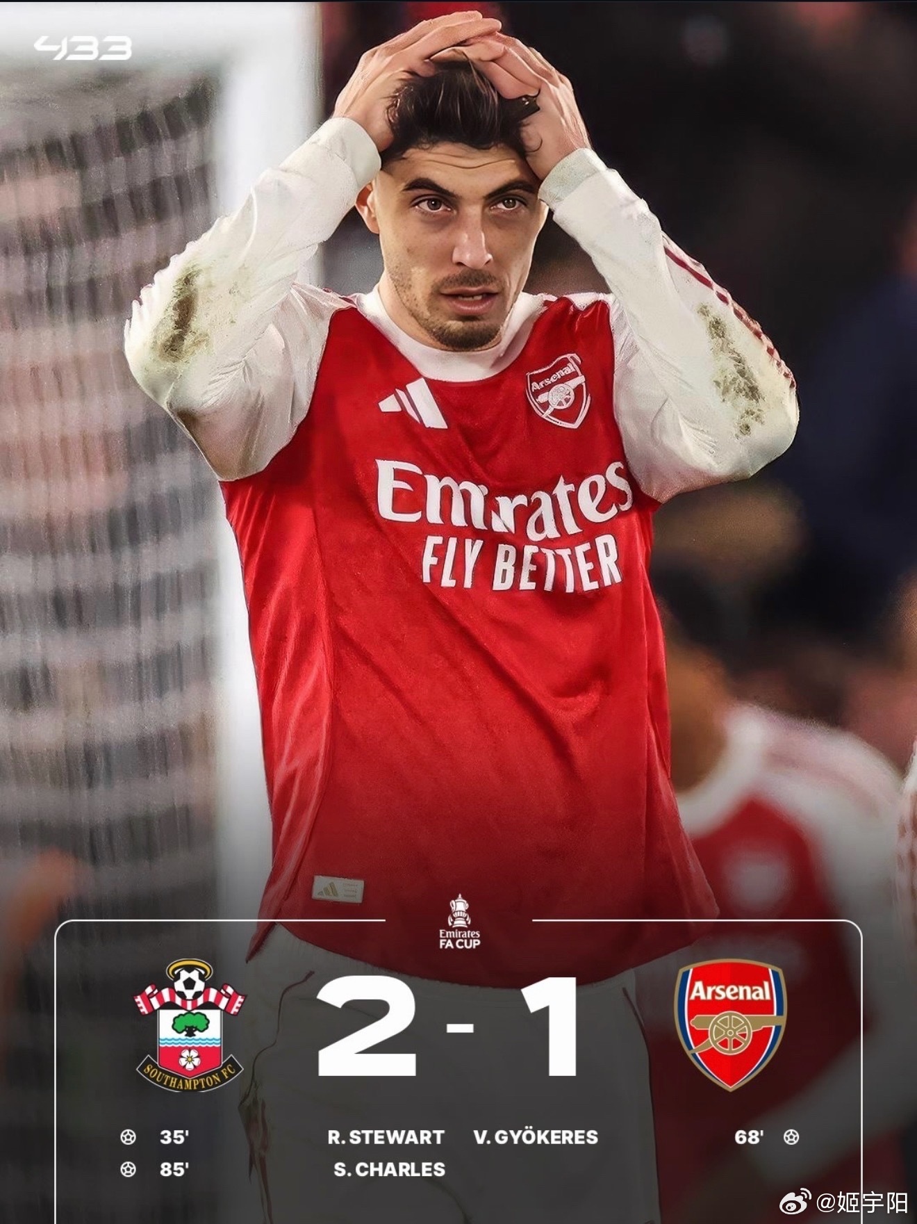 足总杯 1/4 决赛 1 比 2 负于英冠球队南安普顿。之前四线作战的阿森纳,现在只剩下英超联赛和欧冠 。连续输掉联赛杯决赛和足总杯四分之一决赛,对阿森纳士气和信心多少会有影响。事已至此,集中精力把英超冠军拿下才是阿森纳这个赛季最重要的任务。毕竟现在联赛积分榜上,阿森纳领先的优势还是比较大的。南安普顿2比1阿森纳足总杯