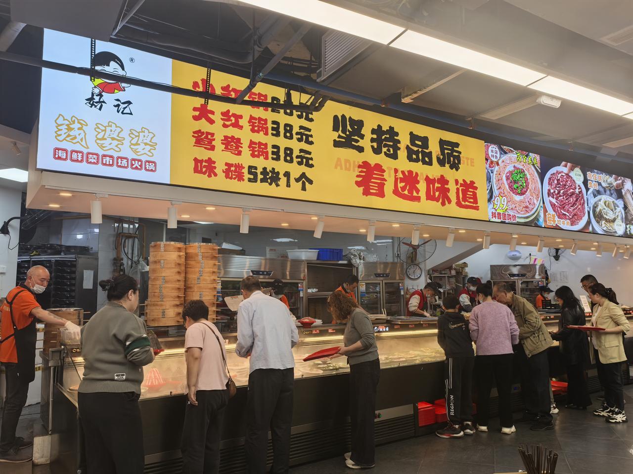 绵阳的这家火锅店生意也太好啦 昨天,朋友约到一起在绵阳五一广场喝茶,晚上就在离广场不远,涪江二桥下面的一家叫“钱婆婆”的火锅店吃饭。朋友说这家店生意一直很好,早就想来品尝一下,今天正好。 我们是下午快6点的时候到的。屋内已经坐满了客人,店外临时摆的桌子也基本上满了,我们运气算好,到的时候,正好还有一张桌子。我们4个人,根据各人喜好,自己端了些晕菜和素菜,都是提前装好的,自己端就是了,吃完凭盘子数量类型结账。晕菜有16.8元/盘和12.8元/盘的,素菜6.8元/盘。主打一个新鲜实惠。感觉味道还可以,4个人消费了223元。看来,生意好还是有原因的。 我们用完餐,已经7点过了,都还有客人在拿号排队,生意是真的好。在大家都在喊餐饮生意难做的今天,是不是可以从中学到点什么呢?