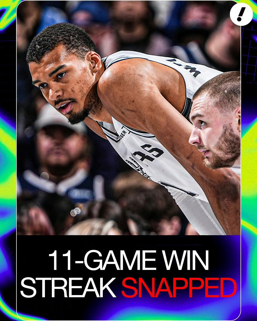 马刺这边,文班亚马虽然全场砍下32分11篮板5盖帽的豪华数据,多次上演精彩封盖和高难度得分,但在最后时刻面对约基奇的顶级防守,未能完成致命一击。凯尔登·约翰逊贡献27分,瓦塞尔砍下25分,两人在外线火力全开,但最终还是未能帮助球队延续连胜。