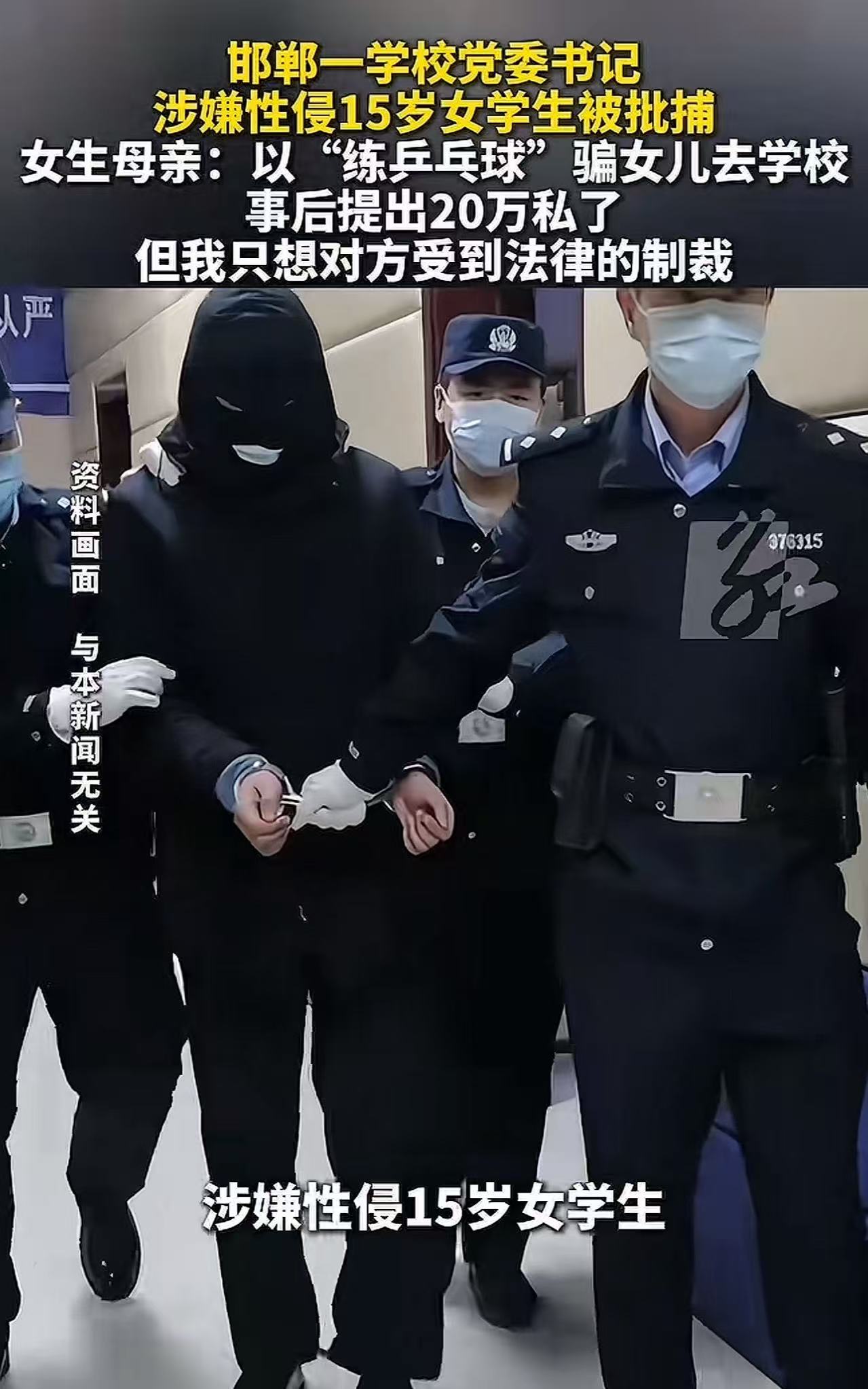 邯郸,15岁女儿网购避孕药,母亲逼问后崩溃,女儿竟然被学校领导性侵。而领导曾提出以 10 万至 20 万元私了!女生母亲:“把我女儿一生都毁了,我不想要钱,我只想他受到法律的制裁!”网友:“这种人怎么当上学校领导当?受害者只有一个吗?”