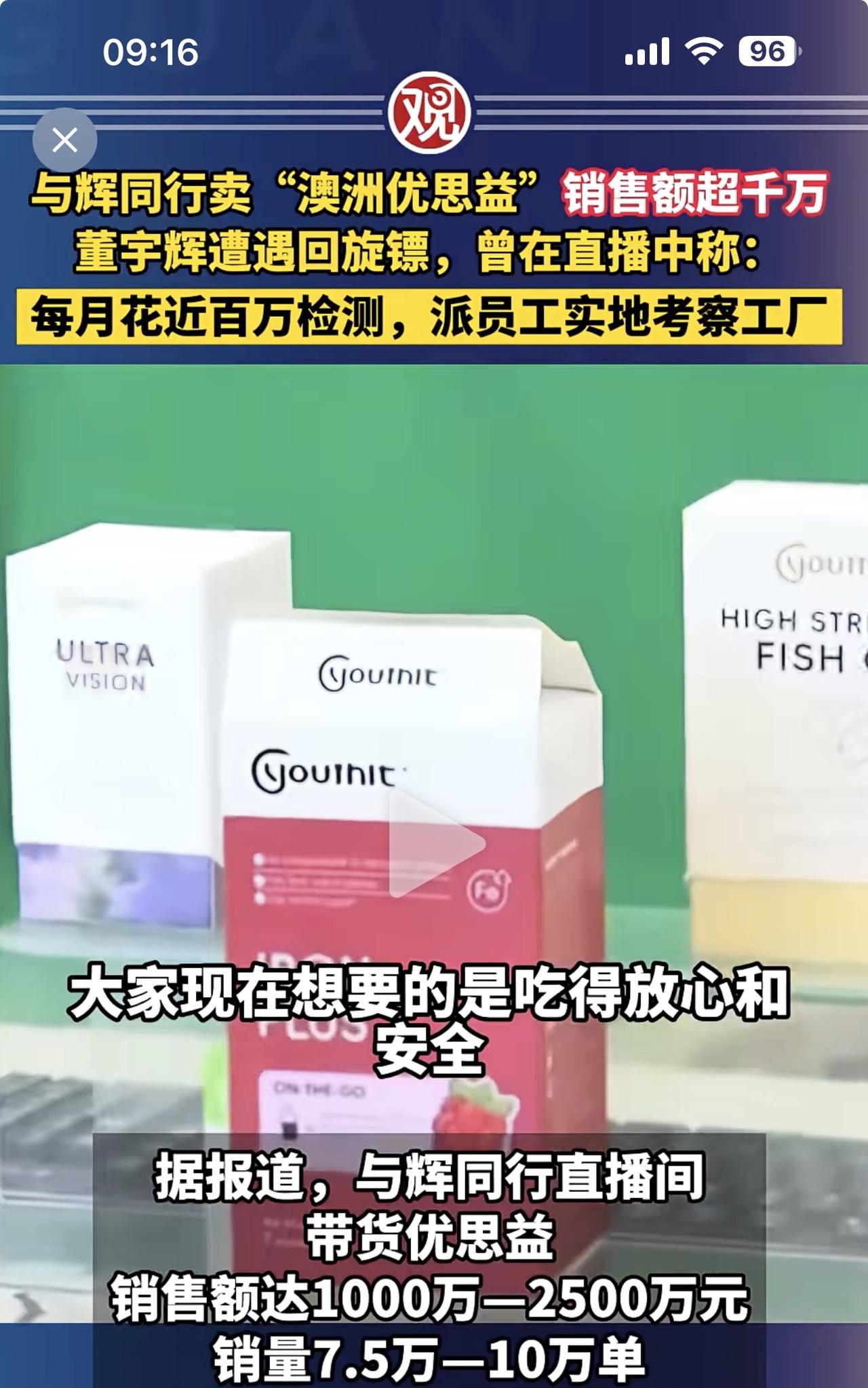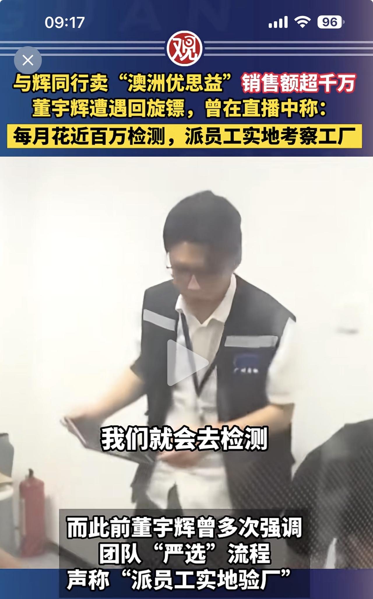 董宇辉说,每月花费上百万的检测费用,对所有上新产品派小伙伴去实地考察了解情况。 这个我是相信的,每个直播平台都会有品控程序!但是检测过程是不是走形式主义呢?小伙伴是不是去了实地考察呢?既然检测了,实地考察了,为什么会出现“澳洲优思益”翻车事件? 董总,你可以出来给大家解释一下,你们号称的吃得放心吃得安全,就是这样的吗?