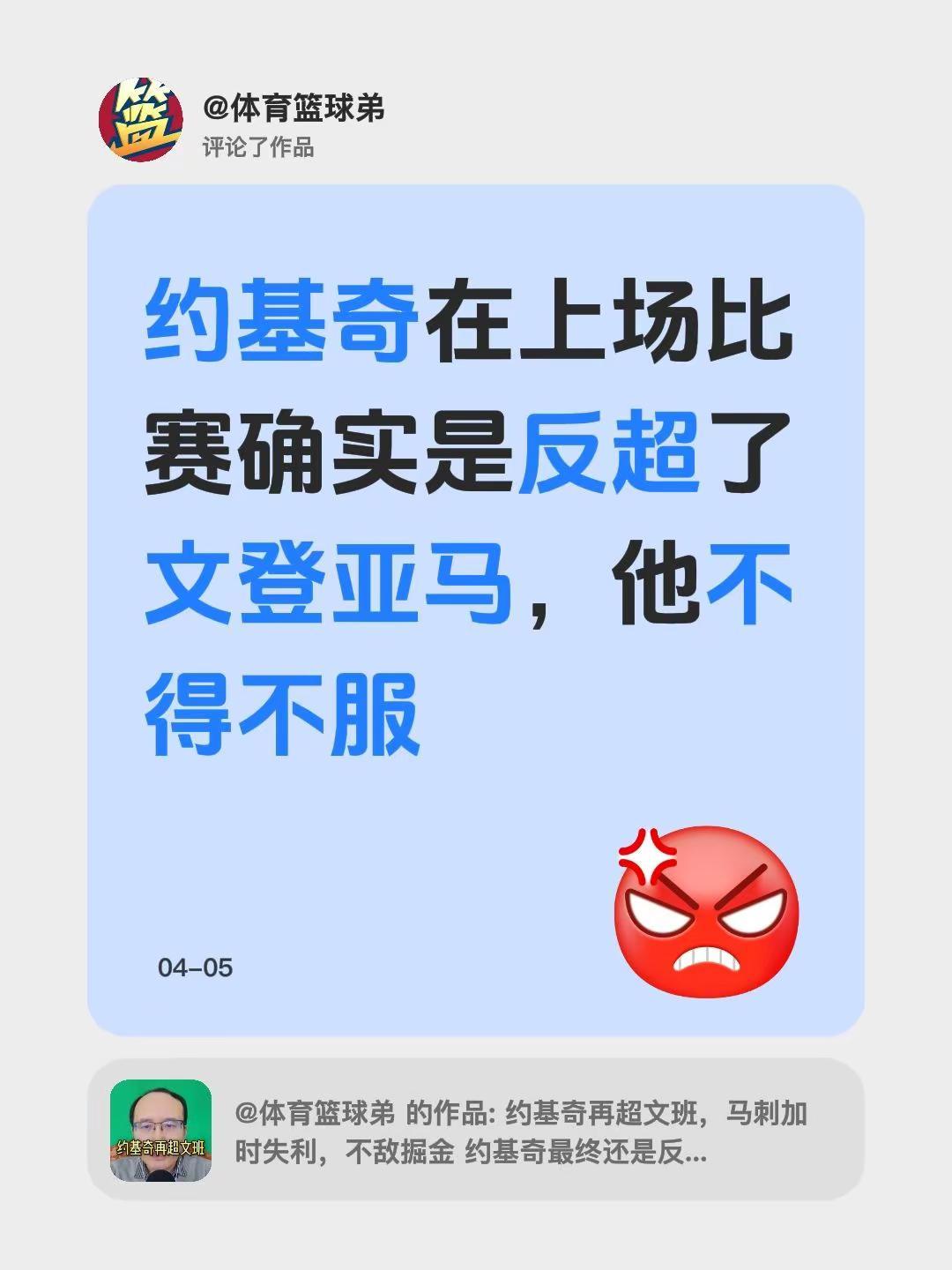 我评论了@体育篮球弟 的作品:约基奇在上场比赛确实是反超了文登亚马,他不得不服