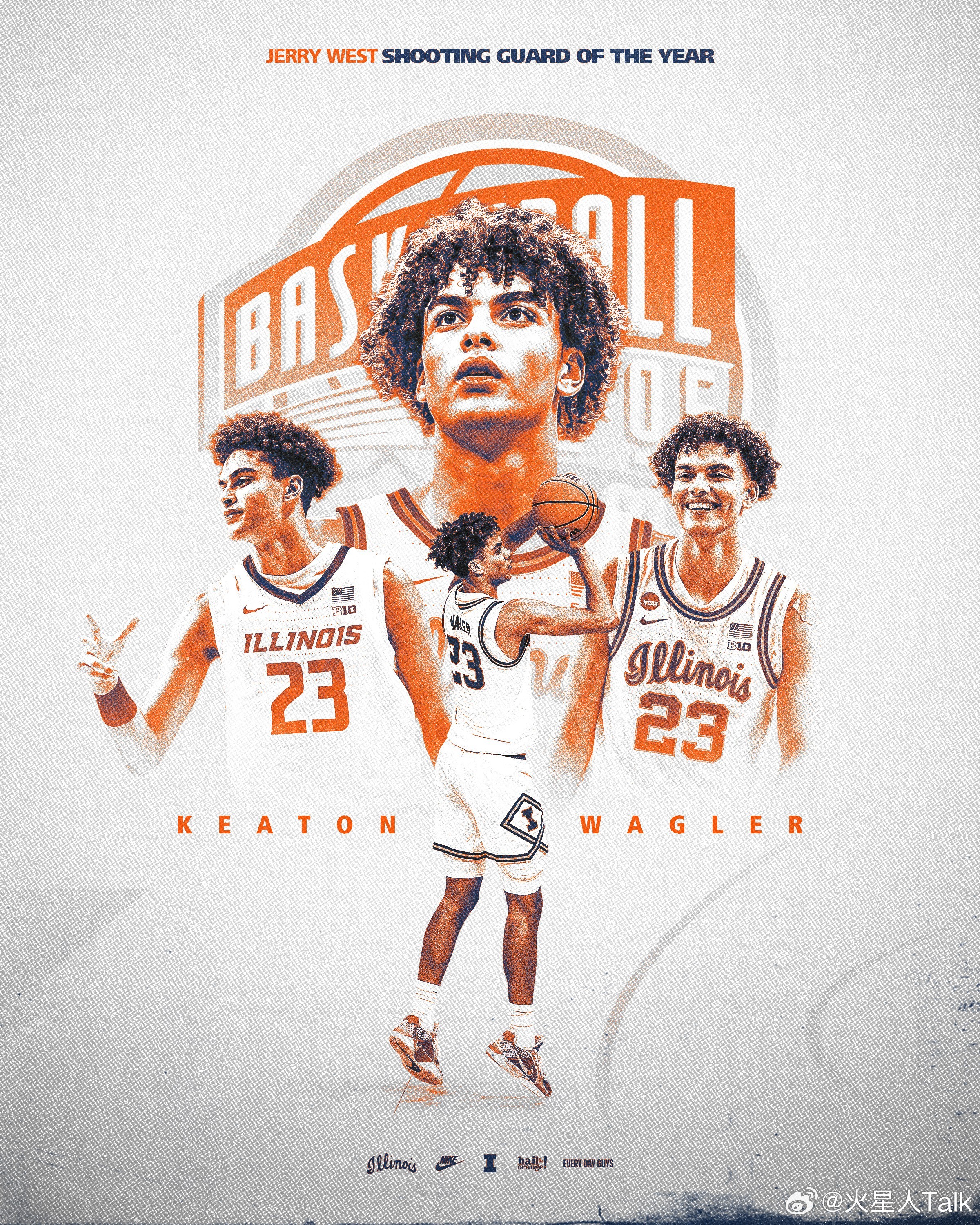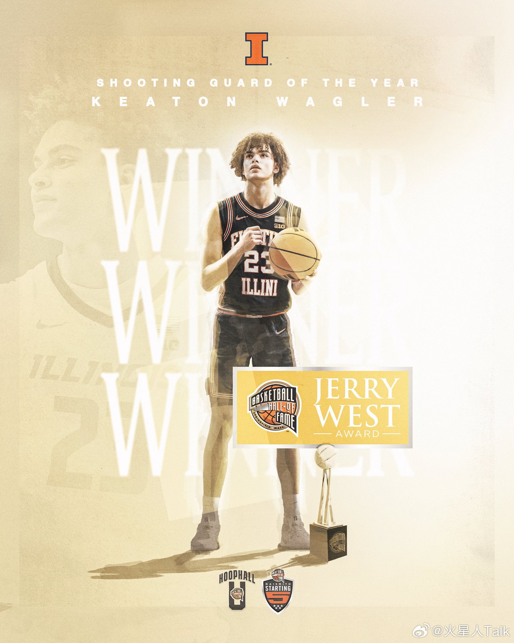 NCAA男篮 2026年奈史密斯大学男子篮球杰里·韦斯特奖(年度最佳分卫):Keaton Wagler,伊利诺伊大学。