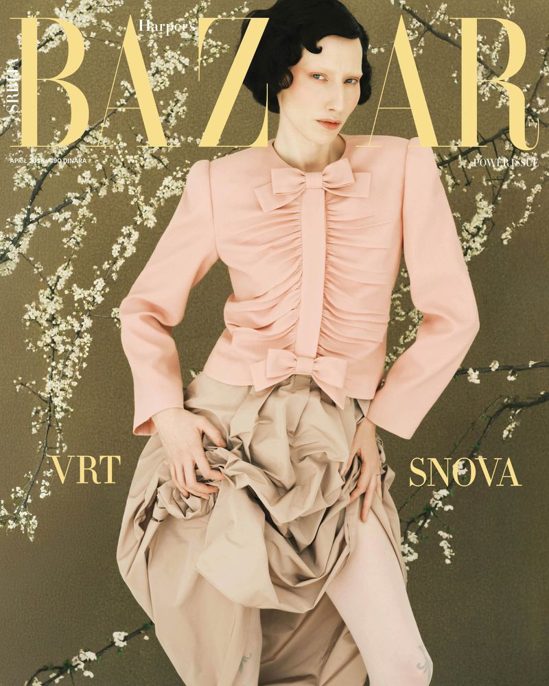 模特Marina Krtinic身着Valentino登上塞尔维亚版《Harper's Bazaar》2026年4月刊封面,“A Garden of Dreams”,尖锐线条、严格剪裁和极简主义在四月都要为浪漫回归让路,变得更柔软更有层次|摄影:Luka & Stefan/造型:Mila Djenic