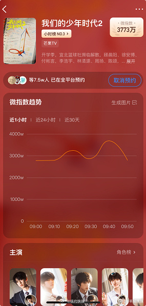 【#我们的少年时代2预约超7.5万瞿颖 作为西班牙人##人民日报谈李荣浩单依纯版权风波##李清明 清明节myday##谢娜的话筒一直是在冲着李小冉的##何炅没开口维嘉就哭了##张月曾沛慈 评级人数#(编辑:郑宗敏;审签:岑杰昌)