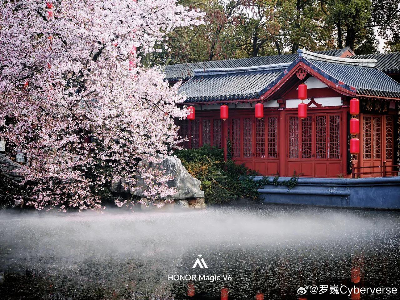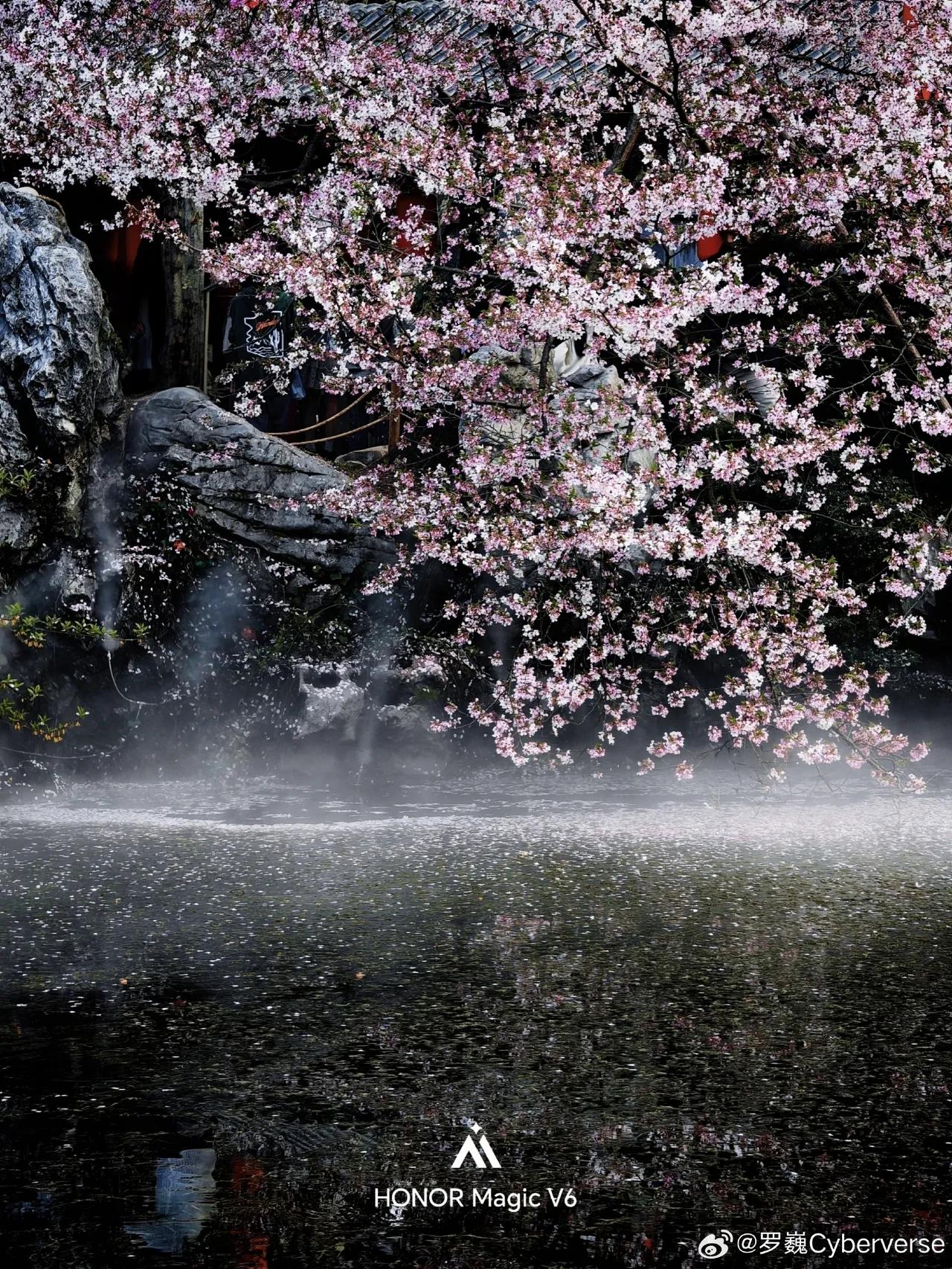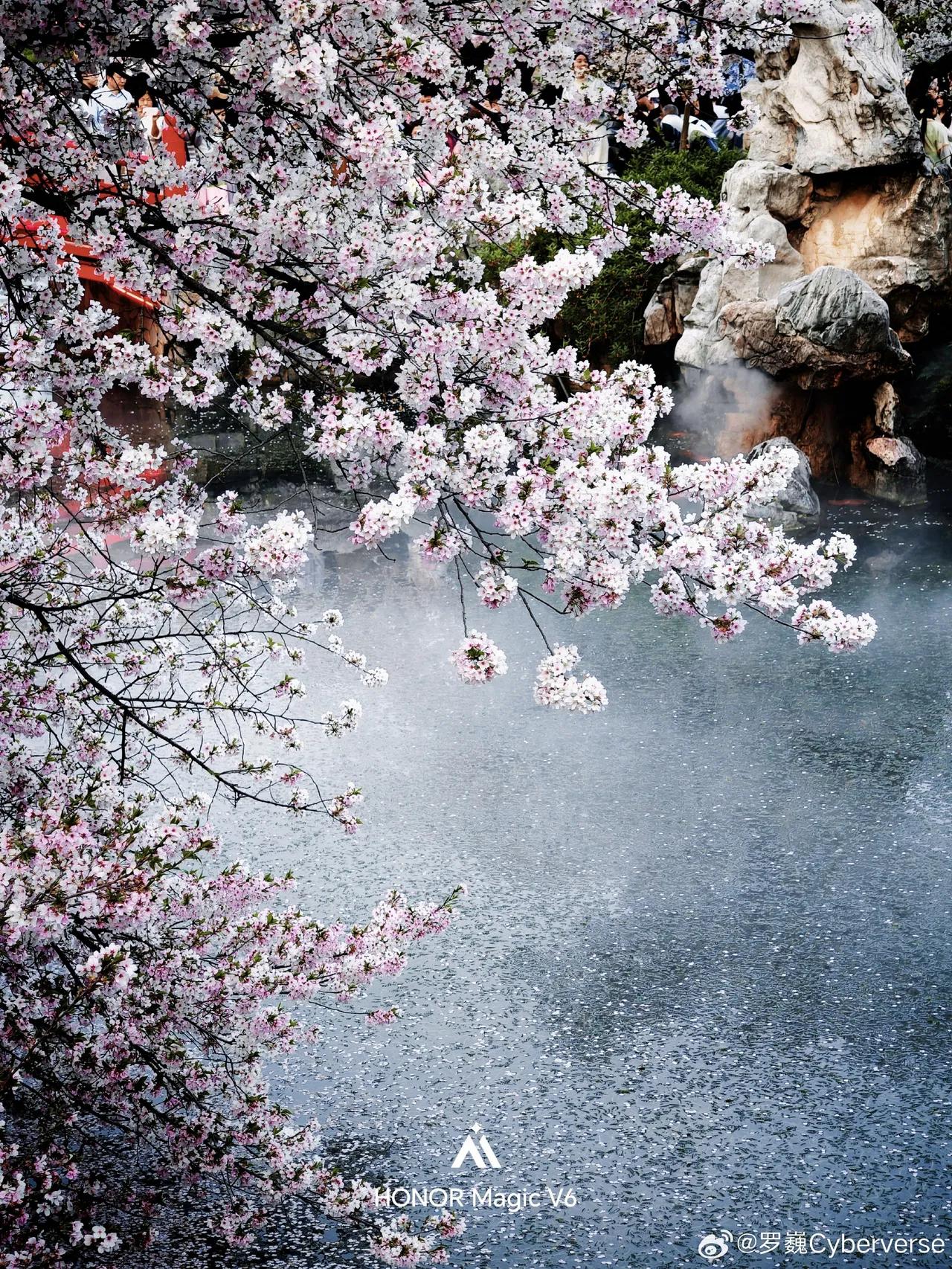 Magic V6拍了一组春日大片! 这张垂枝落水、花瓣飘池的画面,江南园林的春日氛围直接拉满—— 这调色,这意境,Magic V6的影像实力藏不住了? 手机 手机摄影 春日生活打卡季