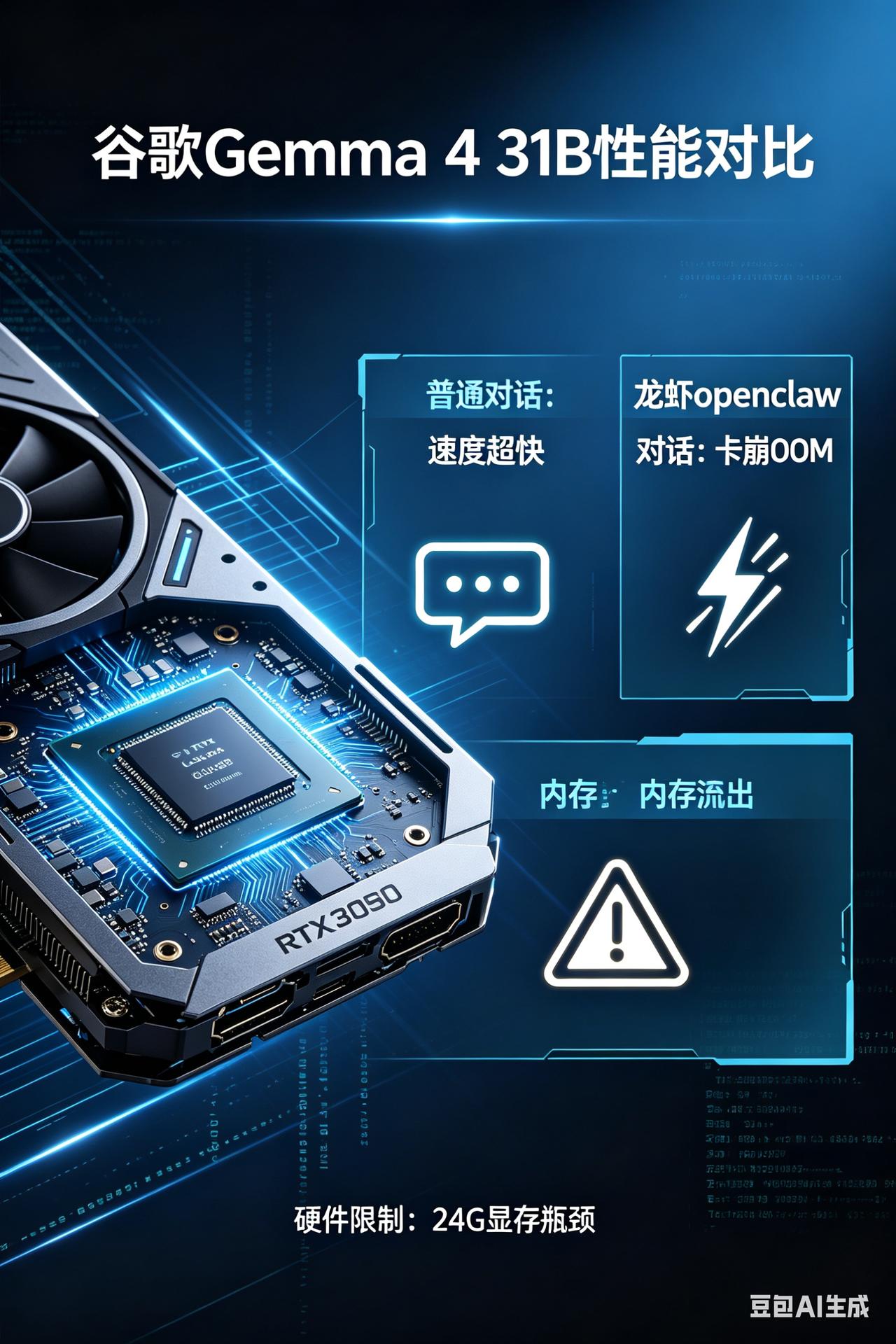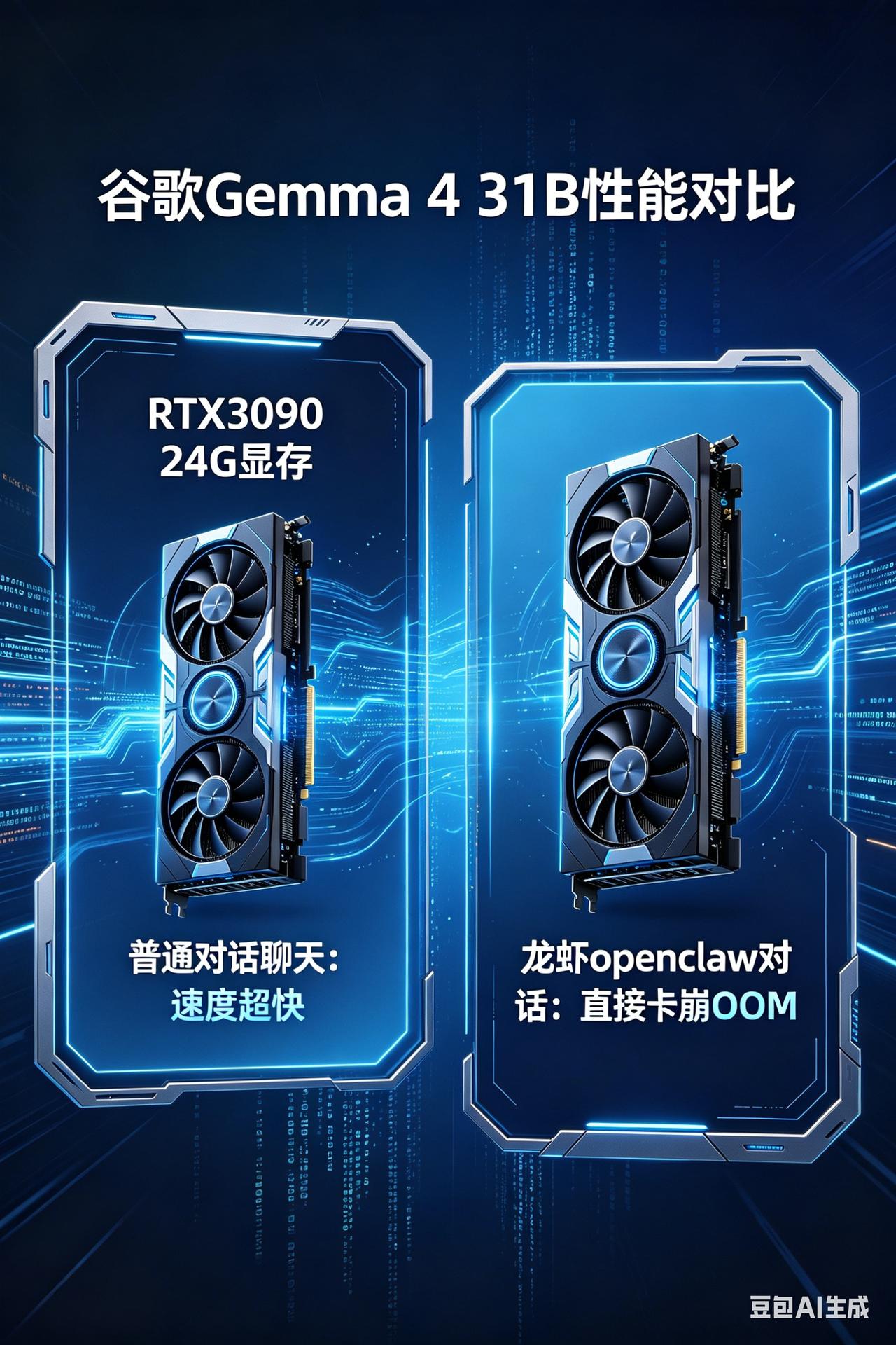使用RTX3090的24G显存测试Gemma-4-31B: 1.环境是Window 11,使用lm studio最新版本,上下文默认4096,Q_4_M,在普通聊天对话中反应速度超级快,快的离谱,输出质量看上去不错。 2.在集成到openclaw里面操作的时候,设置上下文到6万多时候就开始炸了OOM,退出不工作了。一般来说3万多的上下文就撑不住了,所以目前来看不适合24G显存的3090显卡,得32G显存起步。 3.后面还是得靠社区去精简Gemma-4-31B的3090显卡负载容量 4.同Qwen3.5-27B相比,有些用户反映其实差不多,但是31B比27B体量大一点而已,所以Qwen3.5的27B还是很强的,至少3090可以跑得得动