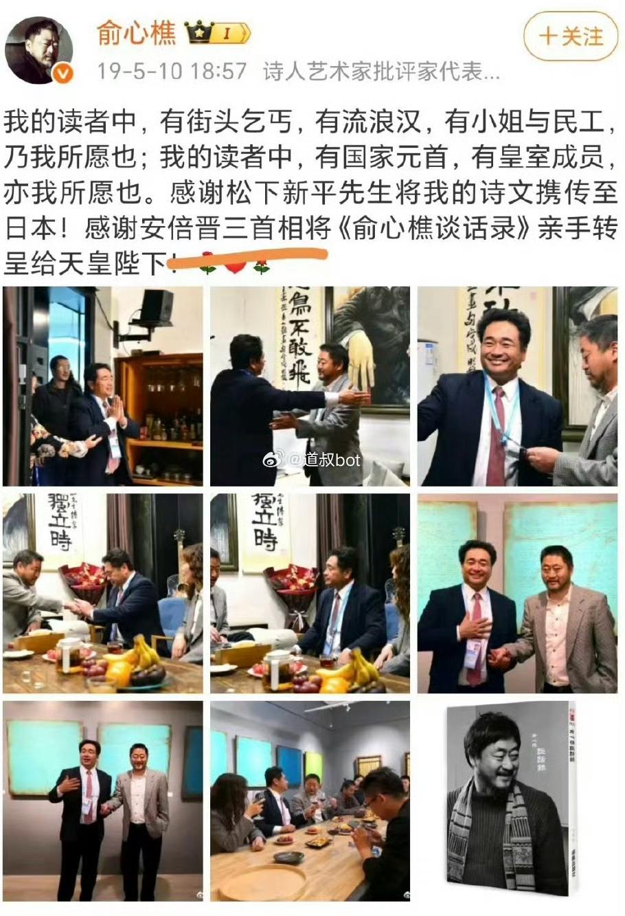 动不动就说自己在中国很孤独,动不动就说“爱国过猛容易猝死”,动不动就说厌倦中国传统文化,动不动就说厌倦中国的当代气氛。 那么,为什么不出国呢?这厮不是追捧日本的安倍晋三和“天皇陛下”吗?为什么不移民到日本,让自己舒服,也让国人不再看到他而糟心呢? 后来又一看,这厮还是一个坐过牢的强奸犯,那么装什么高冷孤独的文化人呢?不就是斯文败类吗?或者是披着文化外衣的奸恶之徒吗? 既然讨厌汉族环境,那么,为什么要用汉族写东西呢?为什么不用外语写呢?是没有本事用外语写,还是说离开汉语环境就装不成逼了?