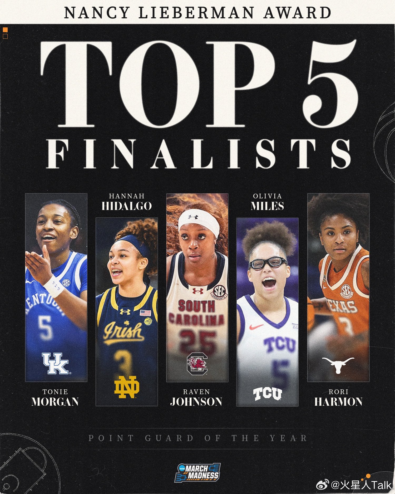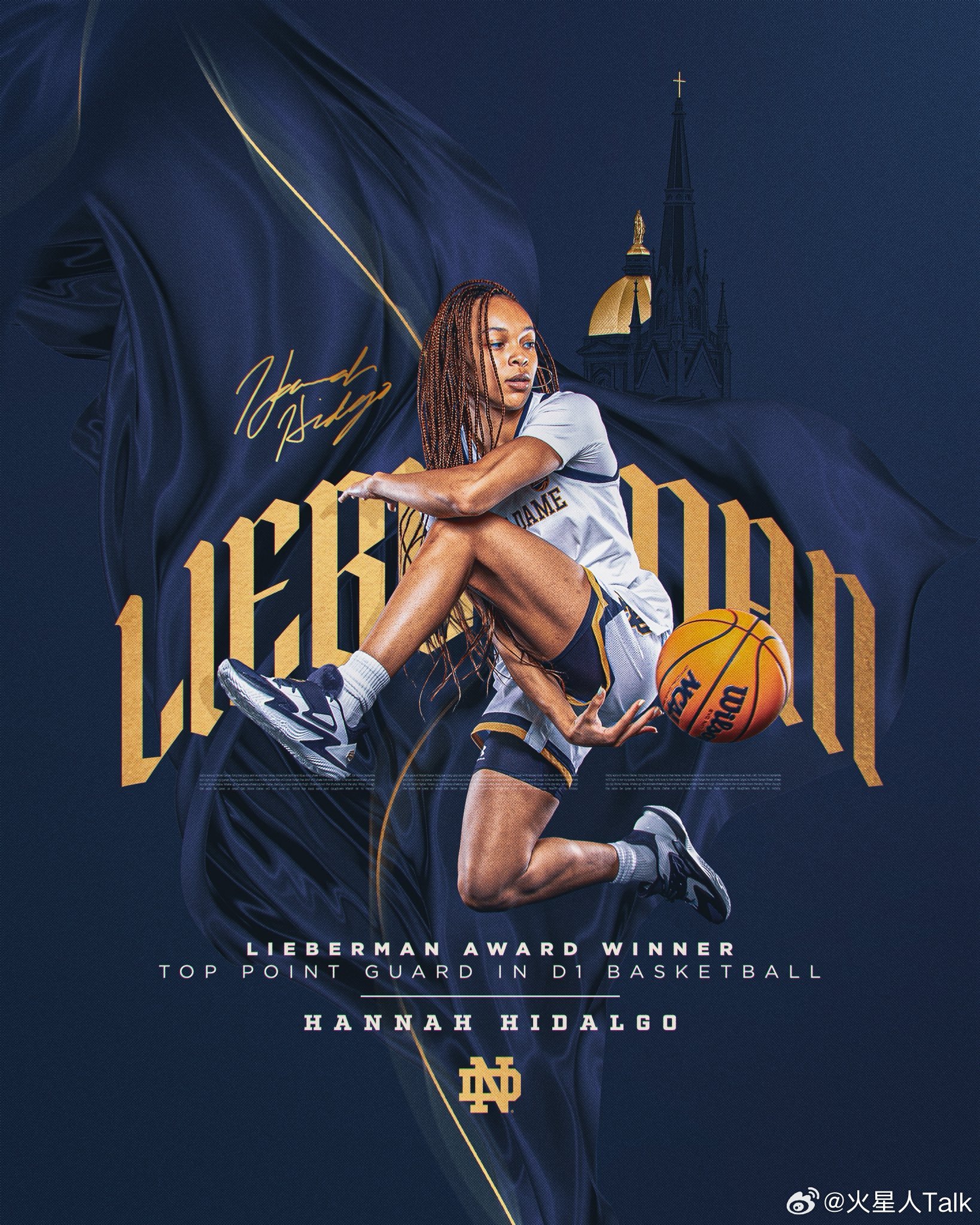 NCAA女篮 2026年奈史密斯大学女子篮球南希·利伯曼奖(年度最佳控卫):Hannah Hidalgo,圣母大学。