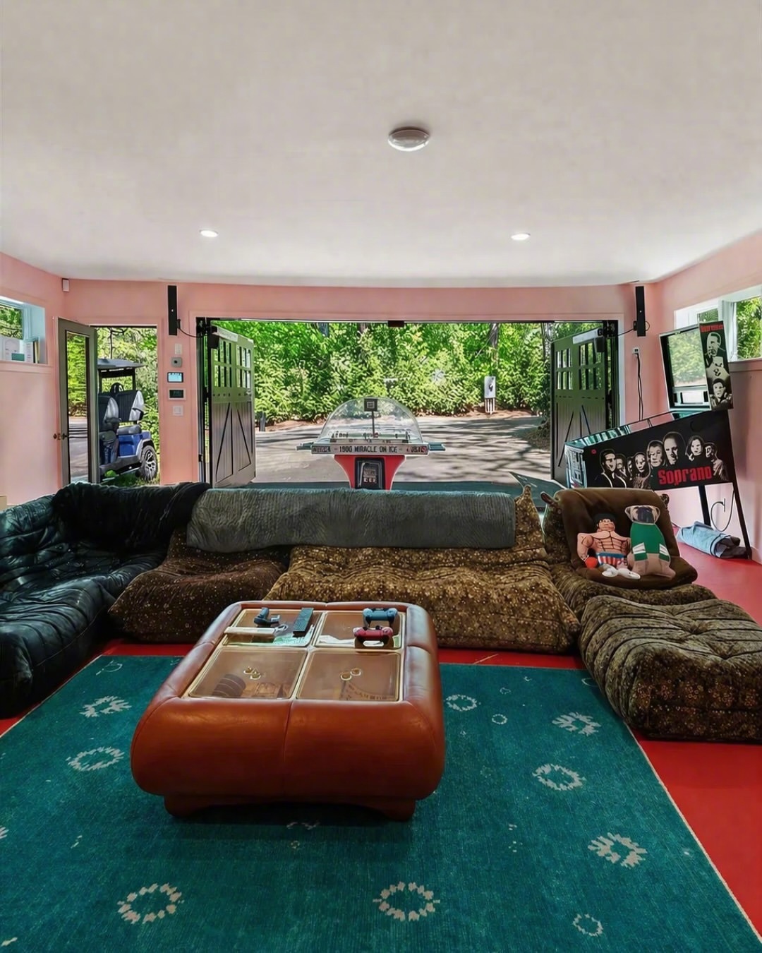 这处房产坐落在超过 6 英亩的私密土地上,配有池塘、客房、影音室、桑拿房、冷水浴池,甚至还有一个隐藏在滑动墙后的地下酒吧。Pete 表示,卖房是为了在迎来女儿之后能离家人更近一些。