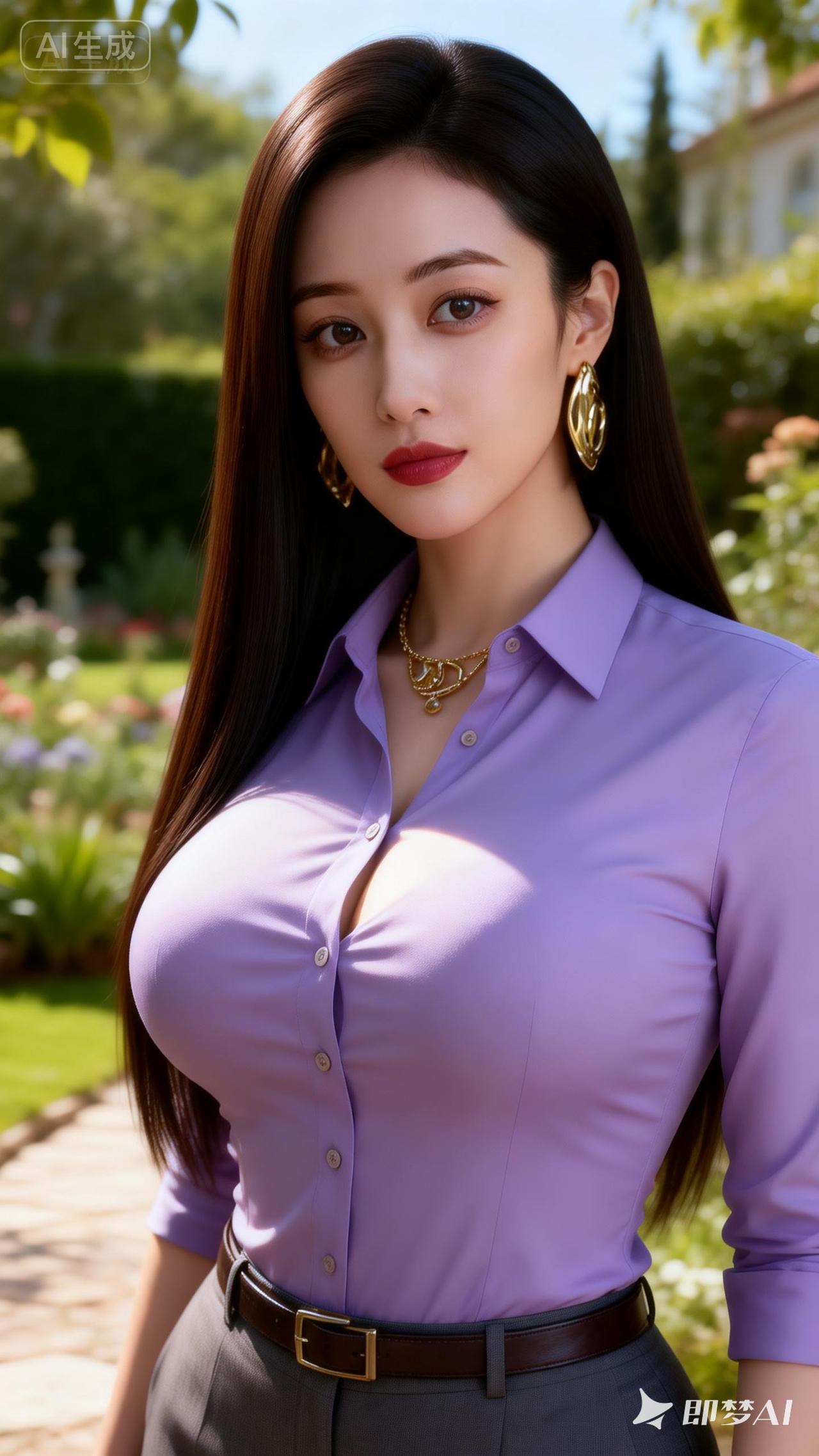 森林中的时尚女王,棕色皮质套装,尽显优雅与自信!