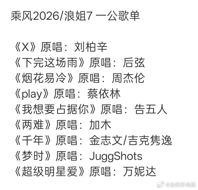乘风2026一公分组选曲乘风一公分组选曲乘风2026今天不直播,期待明天上线