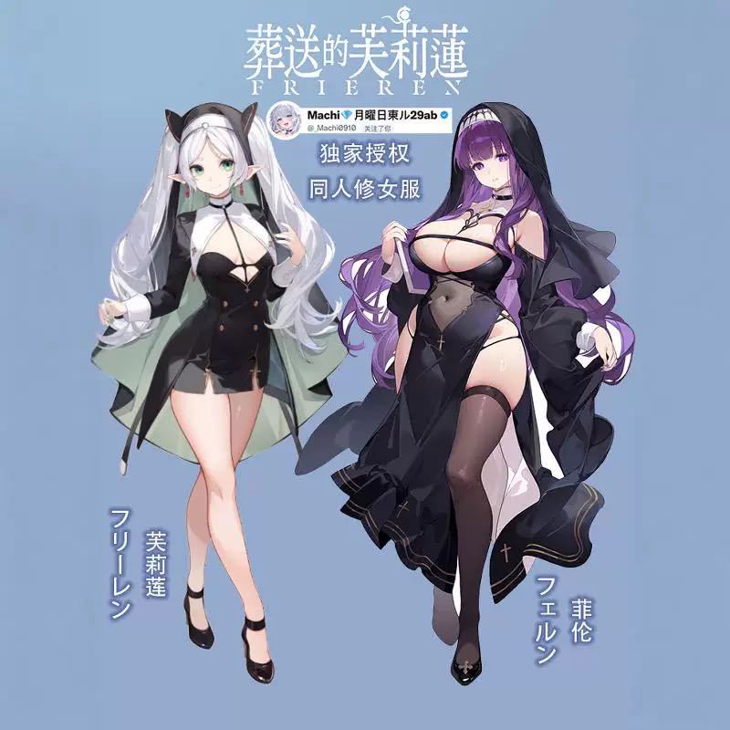 昨晚上没发的返图肥伦一直都是现货 火华家原创设计 Machi合作款 葬送的芙莉莲 菲伦肥伦同人修女现货