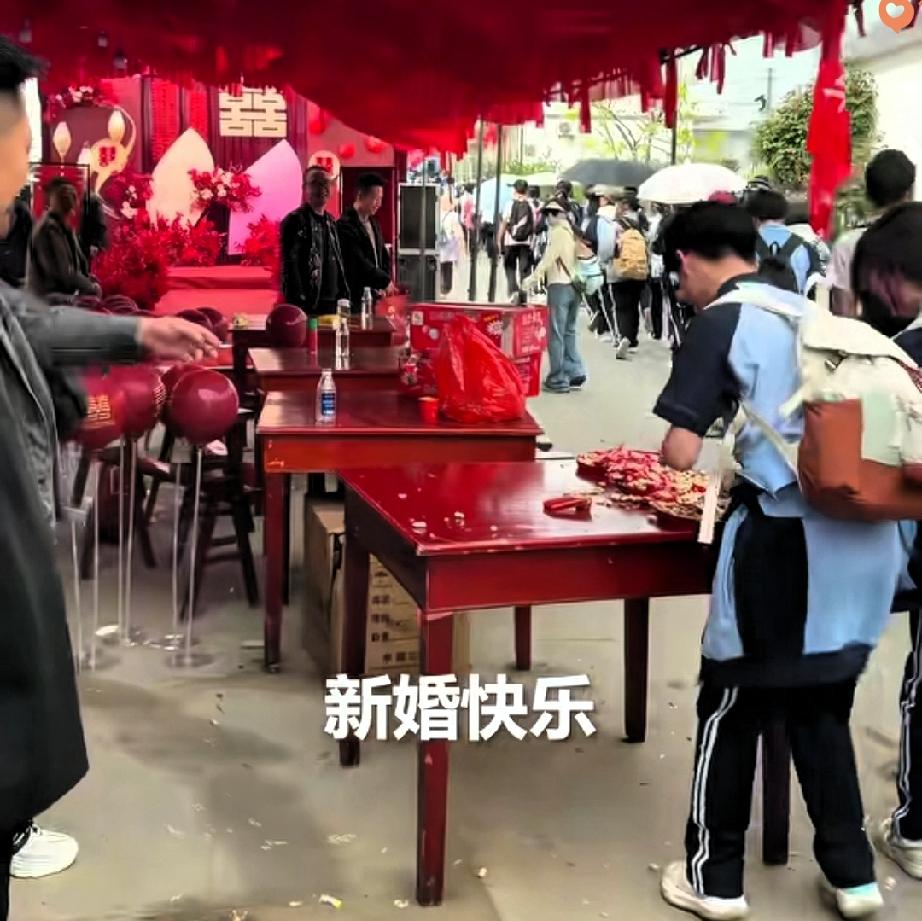 火到人民日报! 这场婚礼没有奢华排场,却暖到了无数人心里。 陕西安康一对新人结婚时,正巧遇上高一学生徒步祭奠英烈路过,新郎没有丝毫犹豫,立刻让家人摆上喜糖和花生,分享这份喜气。 学生们也礼貌回以祝福,一边是新婚的欢喜,一边是对英烈的缅怀,两种温暖撞在一起,格外动人。 比起盛大的场面,这种藏在细节里的善意更打动人。 新郎懂得尊重少年、敬畏英烈,孩子们也回以真诚祝福,双向奔赴的温柔,才是婚礼最珍贵的意义。 我们享受安稳生活的同时,不忘来路、心怀敬意,把温暖传递下去,就是对英烈最好的告慰。 这样温暖的相遇,是不是比任何豪华婚礼都让人难忘?