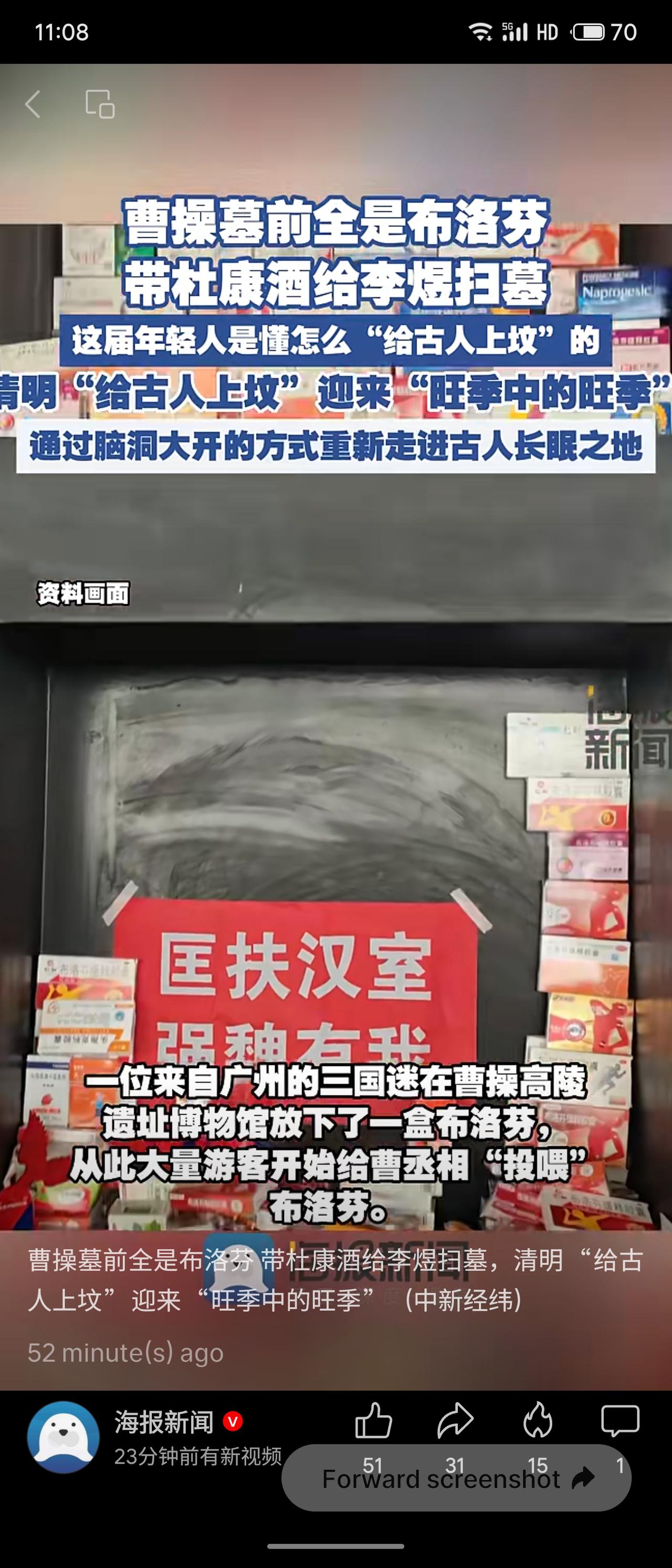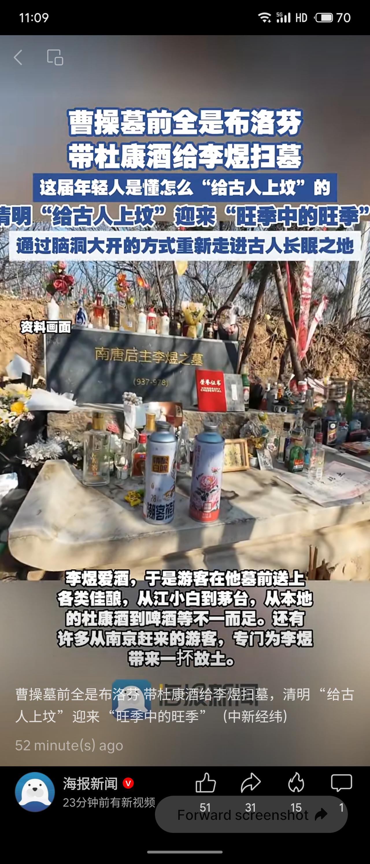 这届年轻人上坟,主打一个“对症下药”。曹操头疼?布洛芬管够;李煜爱酒?杜康、茅台、江小白排排坐;曹丕喜欢甘蔗?直接安排。清明成了“古今梗王”大赛,墓前祭品脑洞清奇,既懂历史又懂玩梗。古人若泉下有知,怕是要托梦问:你们是不是对“扫墓”有什么误解?