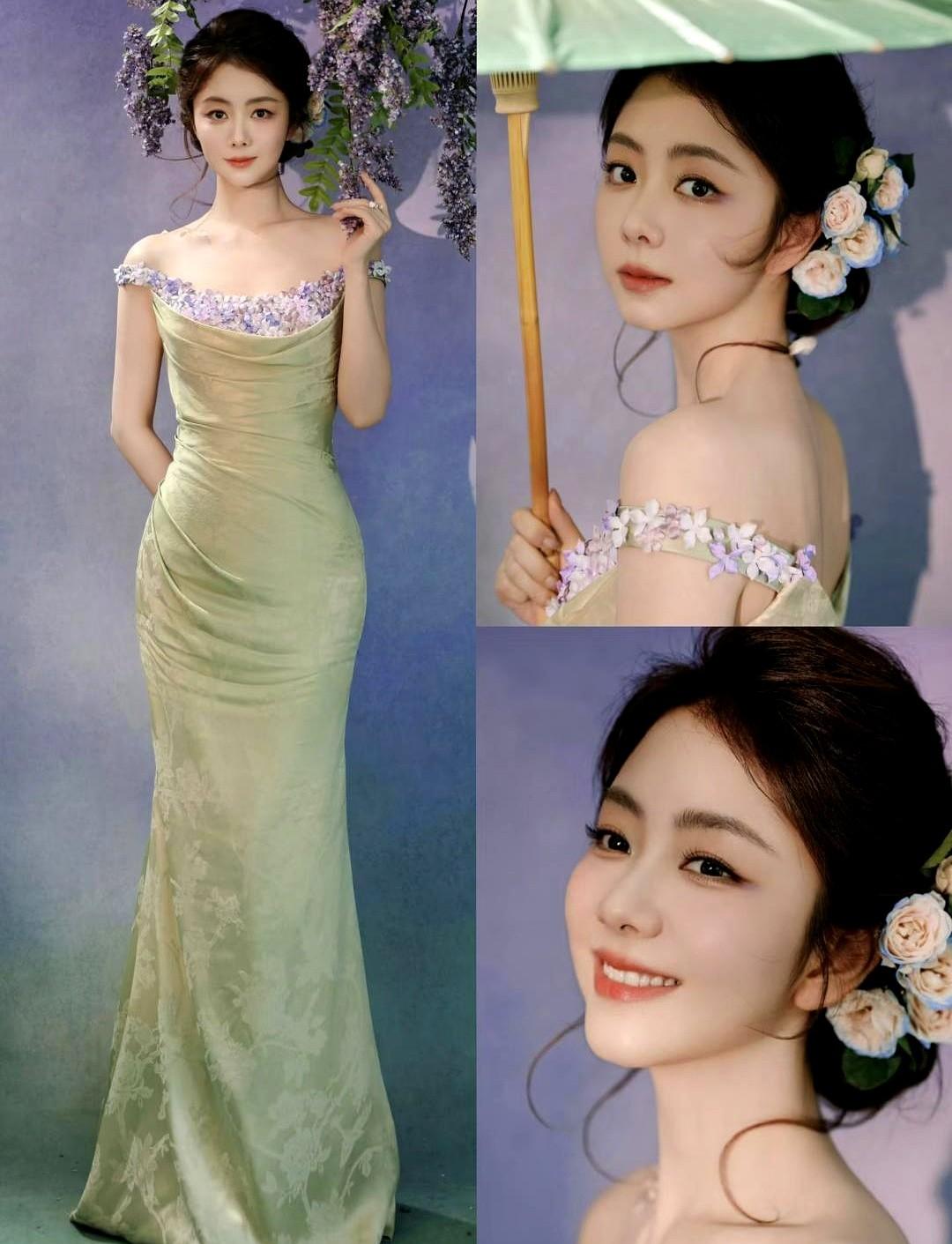 谭松韵这状态,谁看了不迷糊? 昨晚直播,她一身“绿荷仙子”造型,太绝了!根本不是简单的漂亮,整个人气质都变了,温温柔柔的,眼神里全是笑意。岁月真没亏待她。 《我的山与海》收视率都破2.7%了,火得一塌糊涂。大家都在催新剧,她倒是不急,直播里笑眯眯地说剧本还在看,让大家别催。 她手里还有一部跟侯明昊的古装剧《逍遥》,估计也快了。这种不紧不慢的节奏,反而让人更期待了。 感觉她现在是真从容,你们觉得呢?