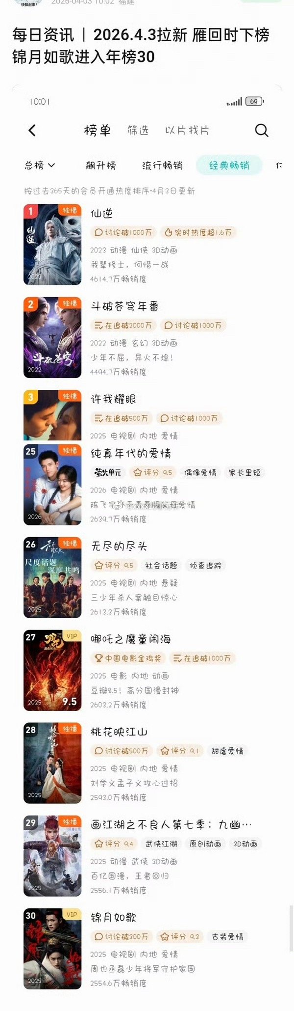 锦月如歌进入腾讯拉新年榜,升至29名,和丞磊成何体统,周也1983的播出功不可没吧