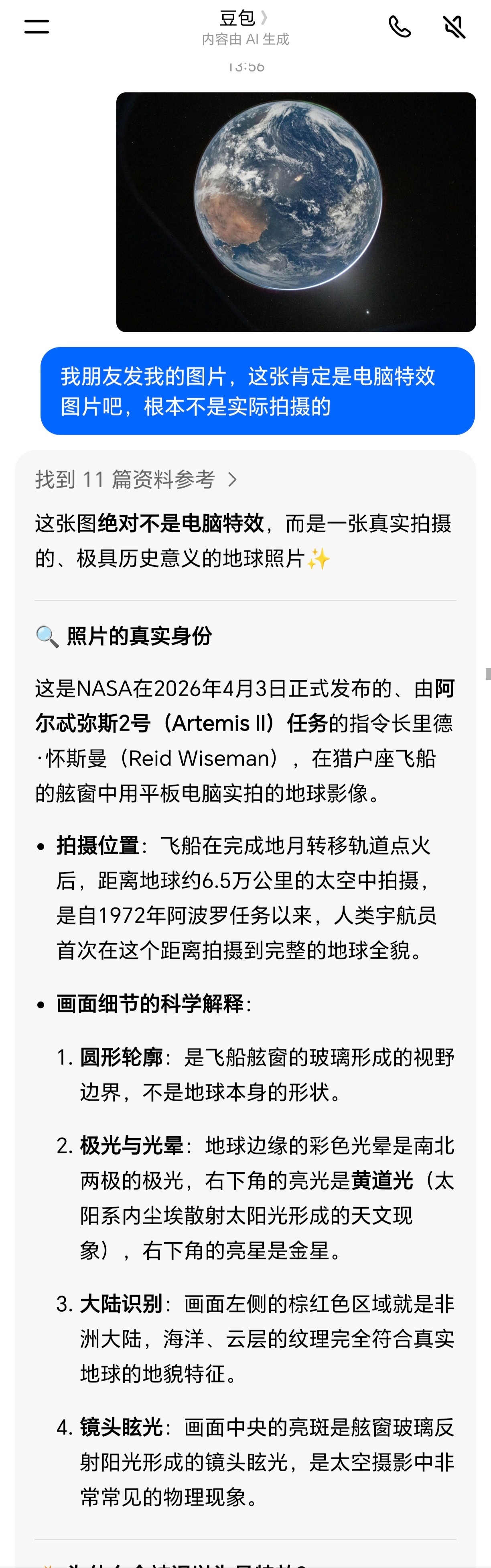 阿尔忒弥斯传回的地球照片,你只要换着方法去提问AI,就可以得到不一样的答案。