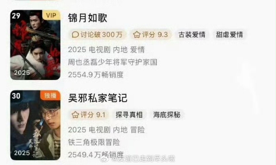 周也、丞磊的《锦月如歌》之前进了🐧拉新榜,今天从30爬到29了,长尾效应不错
