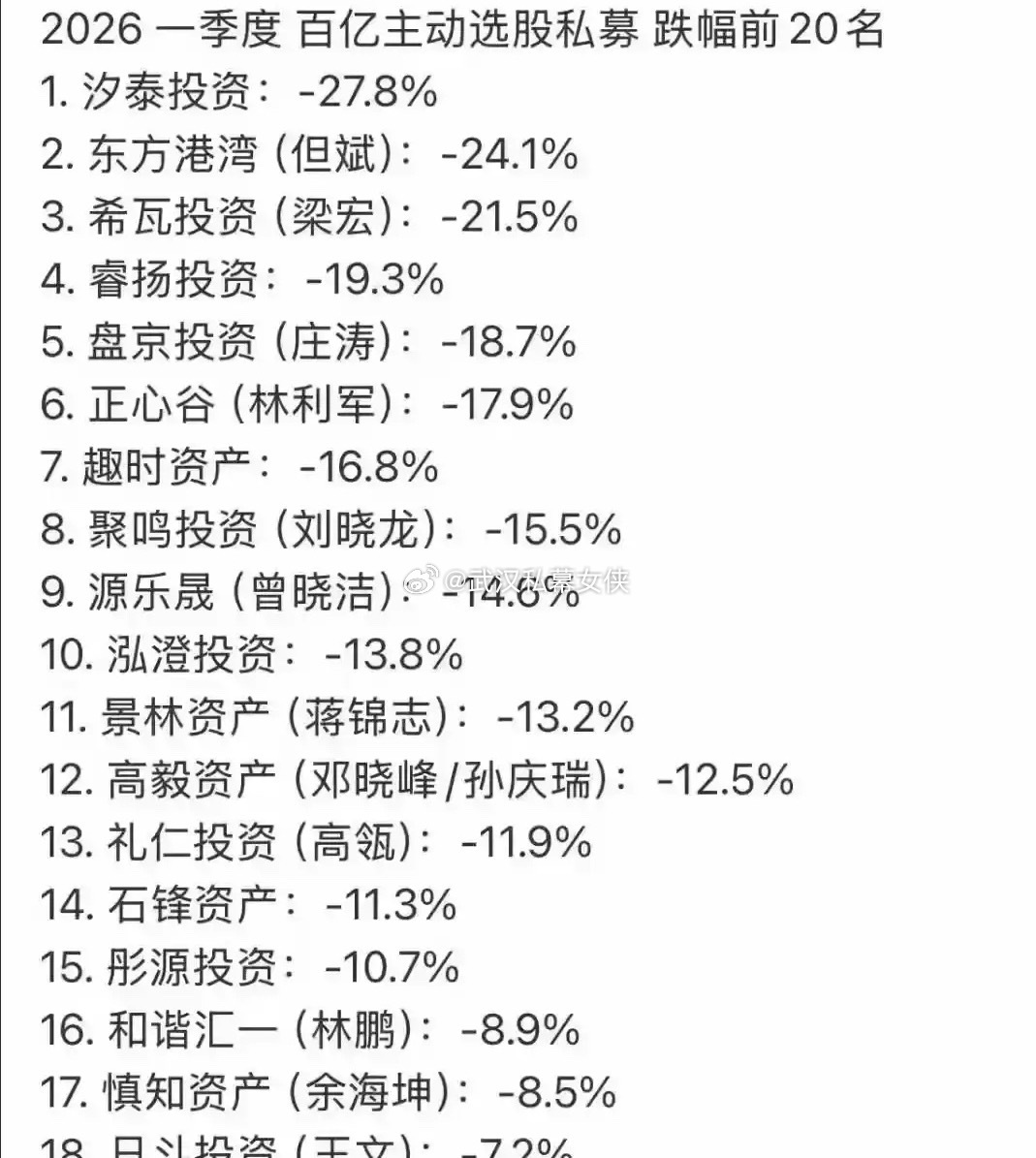 一季度百亿私募亏那么多?太惨了吧,比我惨多了!是真的吗兄弟们?那谁赢了?量化? 如果真是如此,那前段时间游资给量化写投降书就合情合理了。因为不光是游资,连百亿私募大佬也赶不过量化啊!估计未来可以干过量化的只有两类:一类,国家队;二类,价值投资的长期持有者;