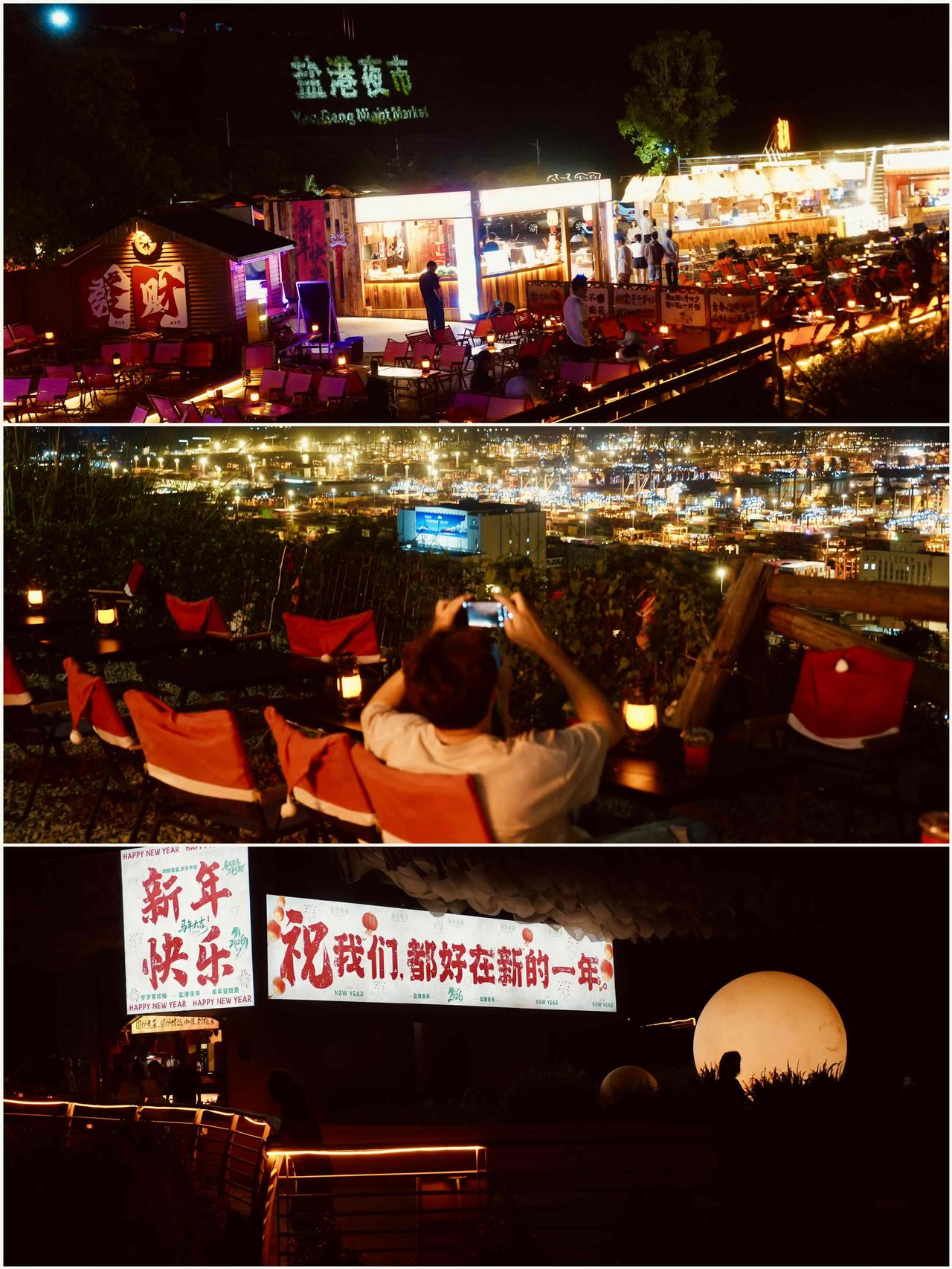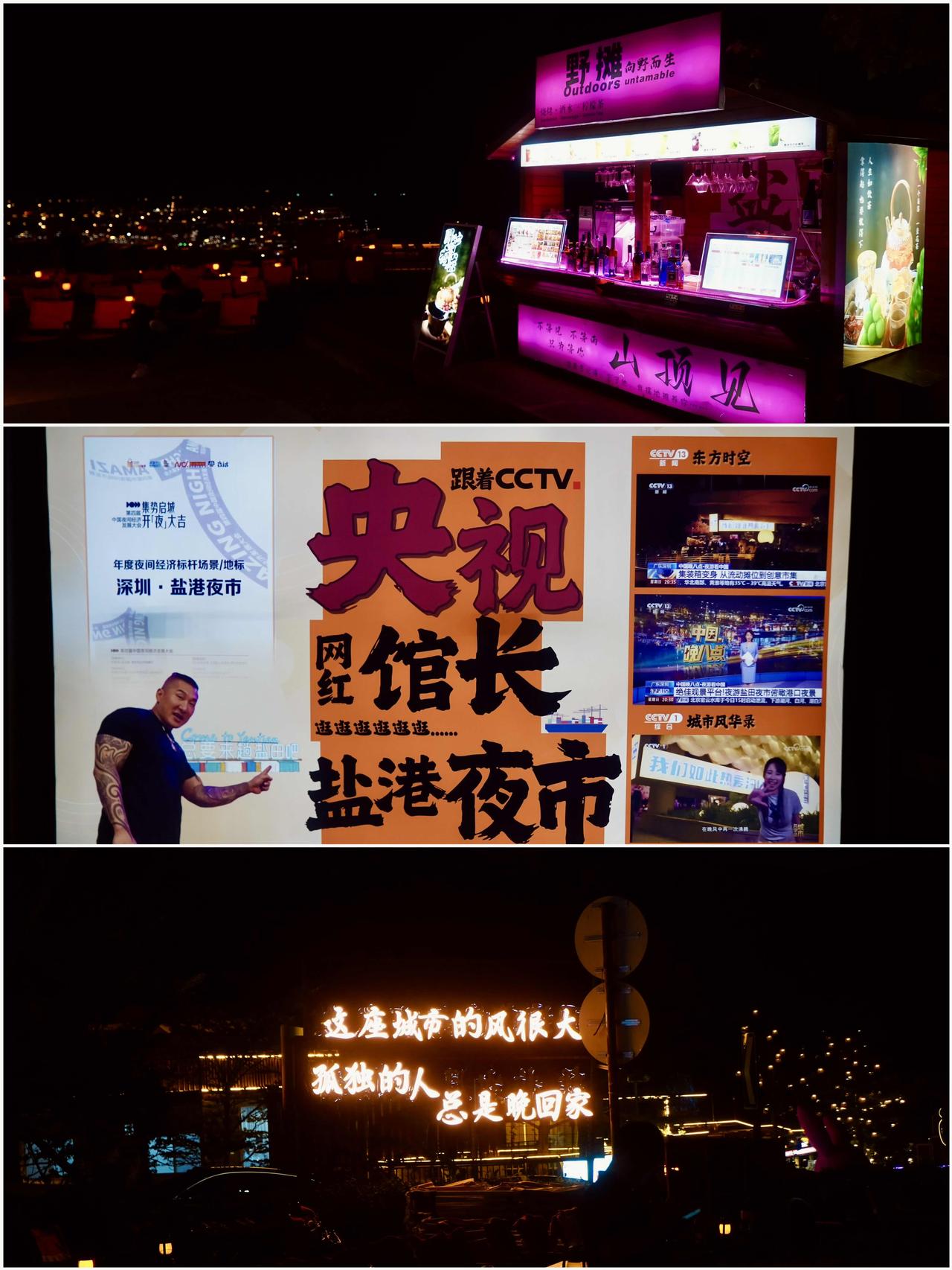 又一次来到深圳出差,第二次住在盐田区。白天阴雨忙着参加发布会,几个女孩晚上工作结束准备出门逛逛。 深圳的朋友给我提供的这个机位,一开始我还挺纳闷的,怎么是个中学呢? 打上滴滴一句前往,随着坡道上山,海拔不断攀升,风景渐入佳境。华灯初上的盐田港可真美啊~港口的璀璨灯光,配上五彩斑斓的集装箱,显示出一道独特的风景,这不就是深圳的爱乐之城吗?可真浪漫啊 这其实也是盐津夜市的所在地,各式各样的摊位琳琅满目,烧烤、手打柠檬茶、街头泡面,饮品小吃,丰俭由人,很有烟火气。坐在景观位看深圳夜景,聚聚会聊聊天也是很chill,各种打卡点拍照也很出片,小酒吧小音乐的氛围感拉满。 观景台的风景极佳,温润的海风,默契的朋友,拍照片都能互相夸夸,情绪价值💯。北方来的孩子,很喜欢这种氛围,山顶共赏华灯初上的夜景太浪漫了。观景台不收费,节假日人还挺多的,大家都来打卡。 “你在烧烤,我要高考,烟火人间,各有荣耀,你烤出人间烟火气,我考出前程万里云”,金句迭出,这个中学的标语很有意思,脑子有点东西~感觉在这里上学不仅风景好,情商很高,气氛很愉悦。 盐田打卡地 深圳盐田风景 盐田周末好去处 深圳盐田夜景
